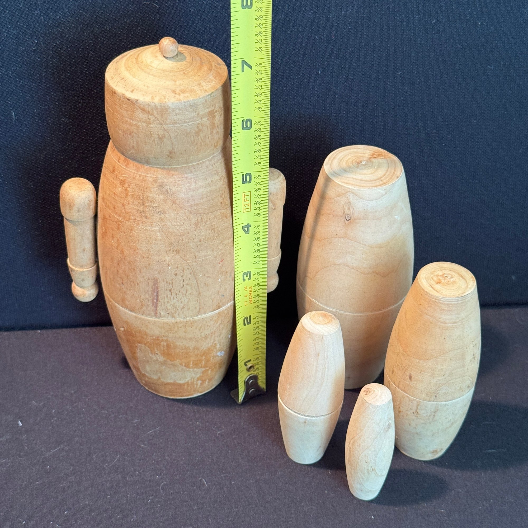 Nesting Wooden Dolls - Rare With The Large One Having Arms!