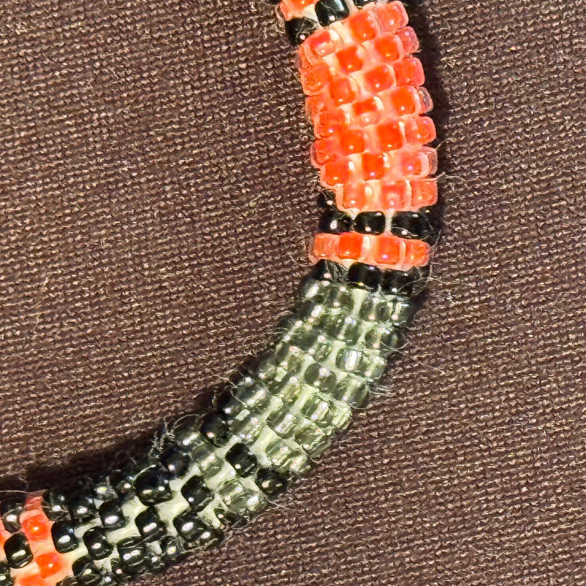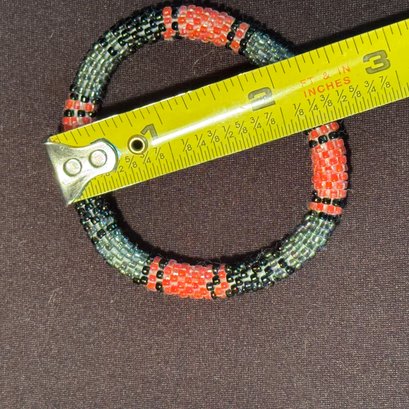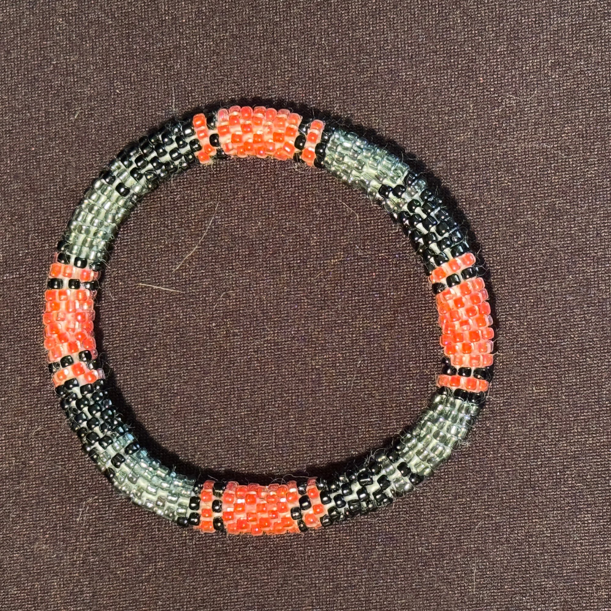 Hand Beaded Bracelet - Metallic - Black, Gold, And Orange