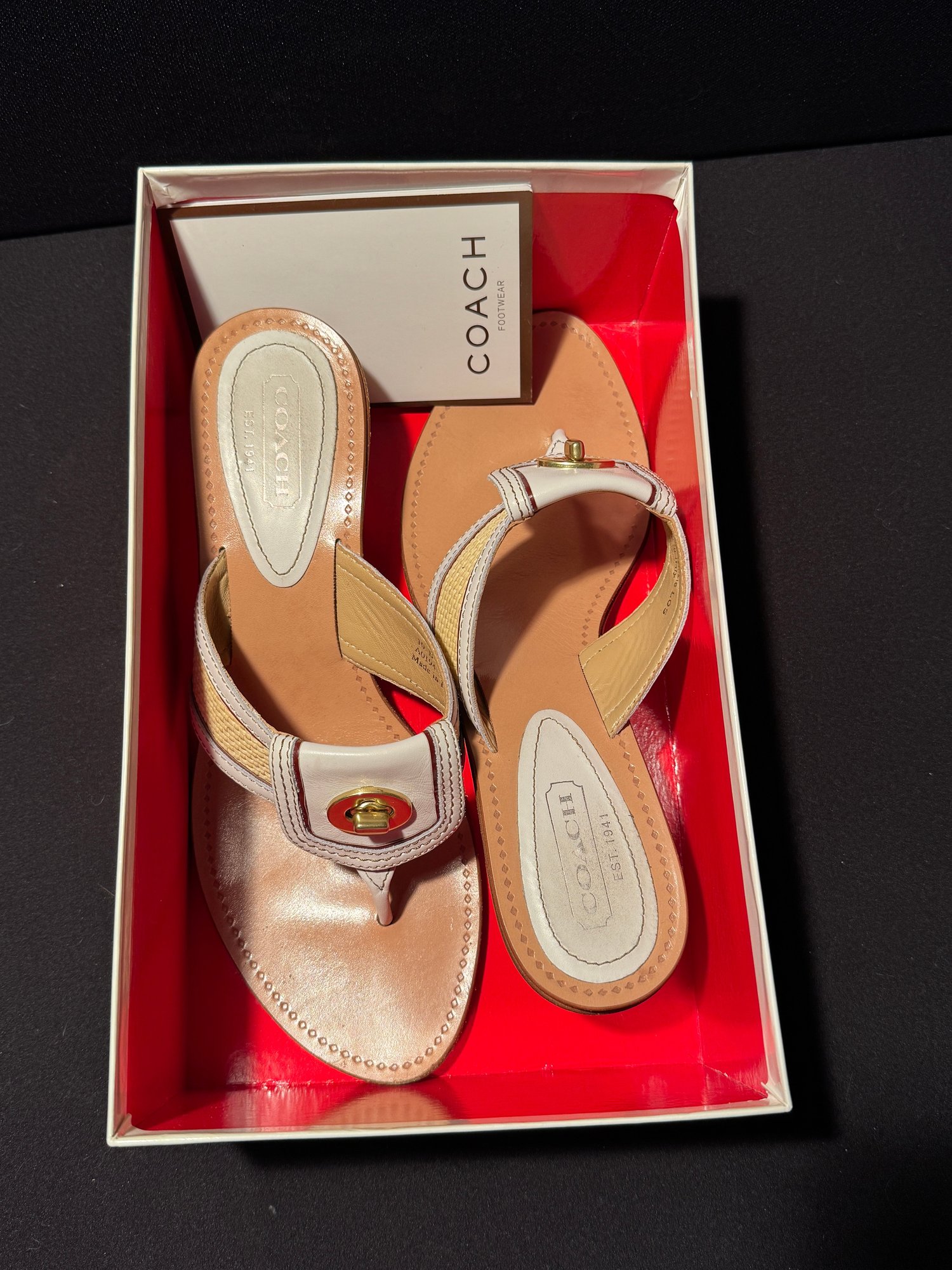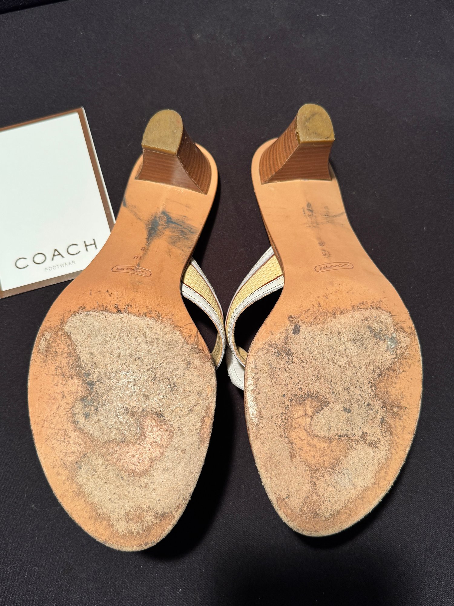 Highly Stylish Coach Leather And Straw Sandals - Size 10