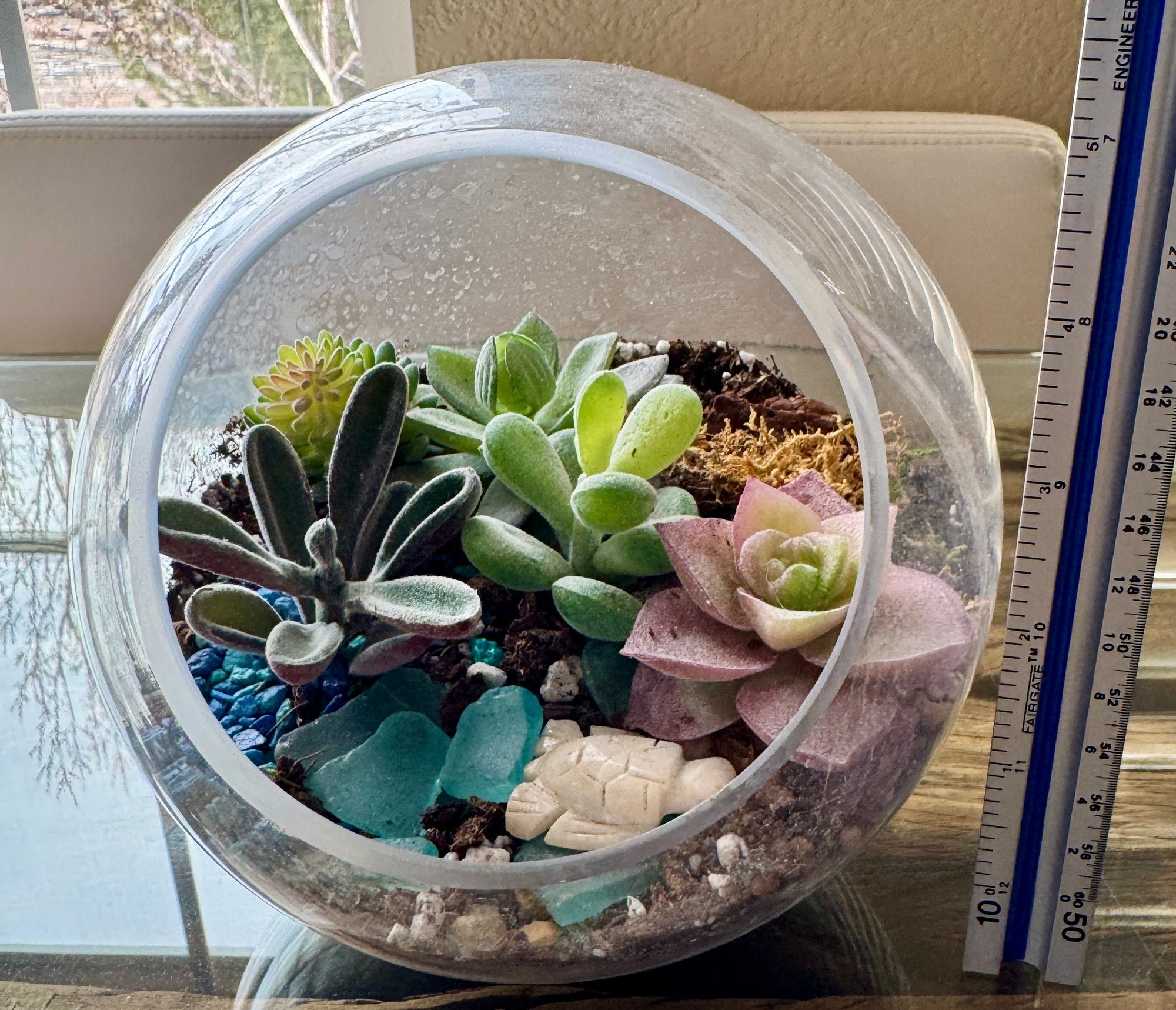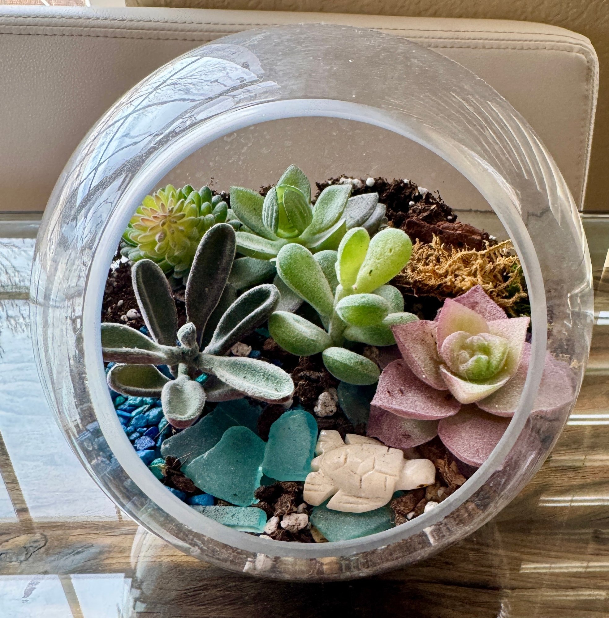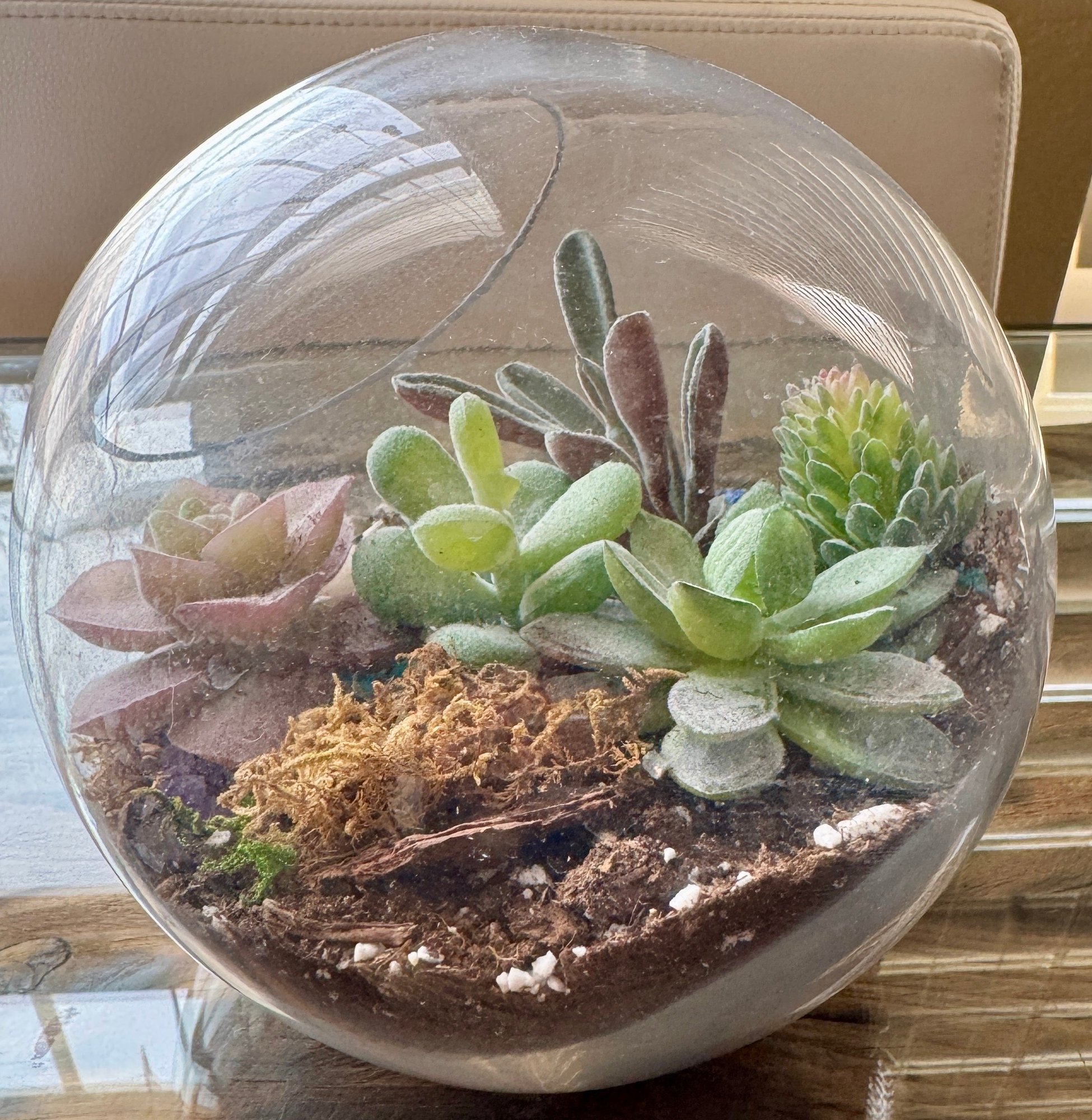 Glass Bowl/vase With Artificial Life Like Succulents