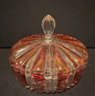 Mid-century-modern Cranberry Flashed Covered Candy Dish