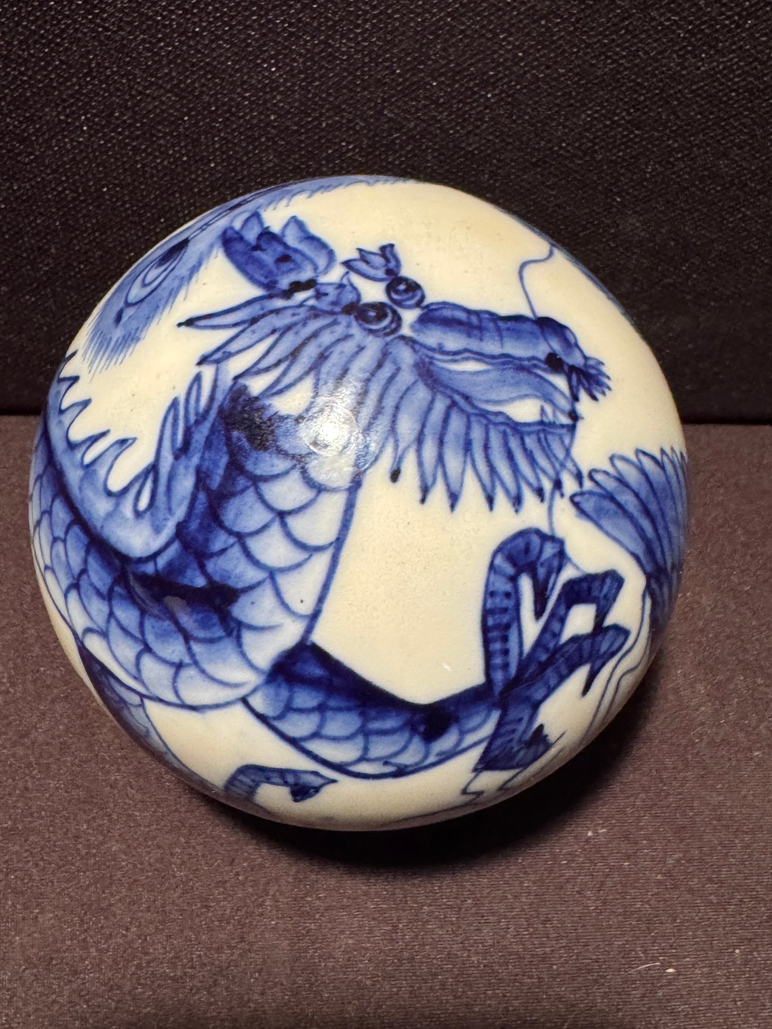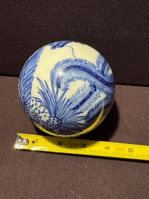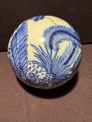 Oriental Cobalt Blue And White Dragon Ceramic Orb