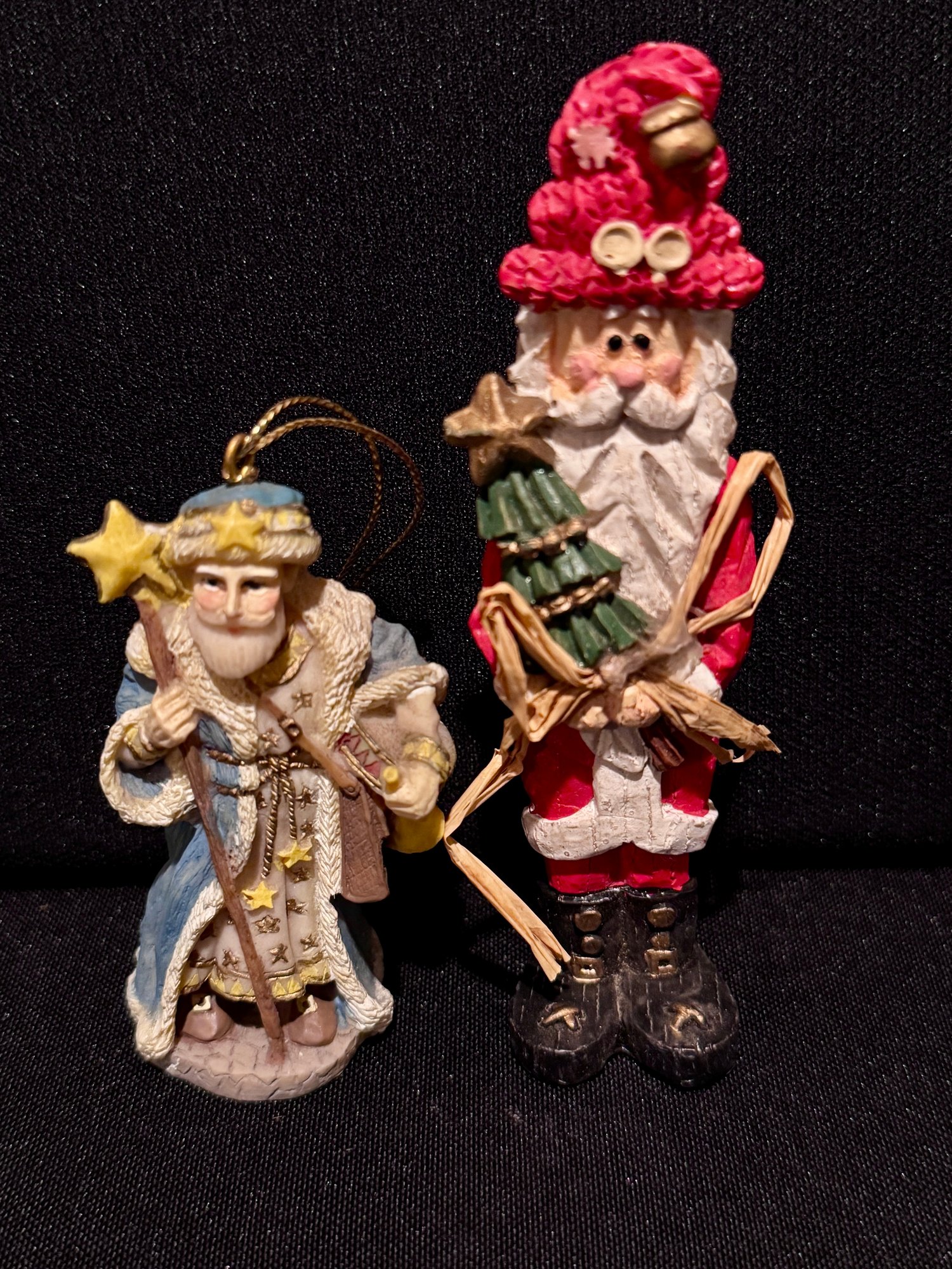 Two International Santa Ornaments