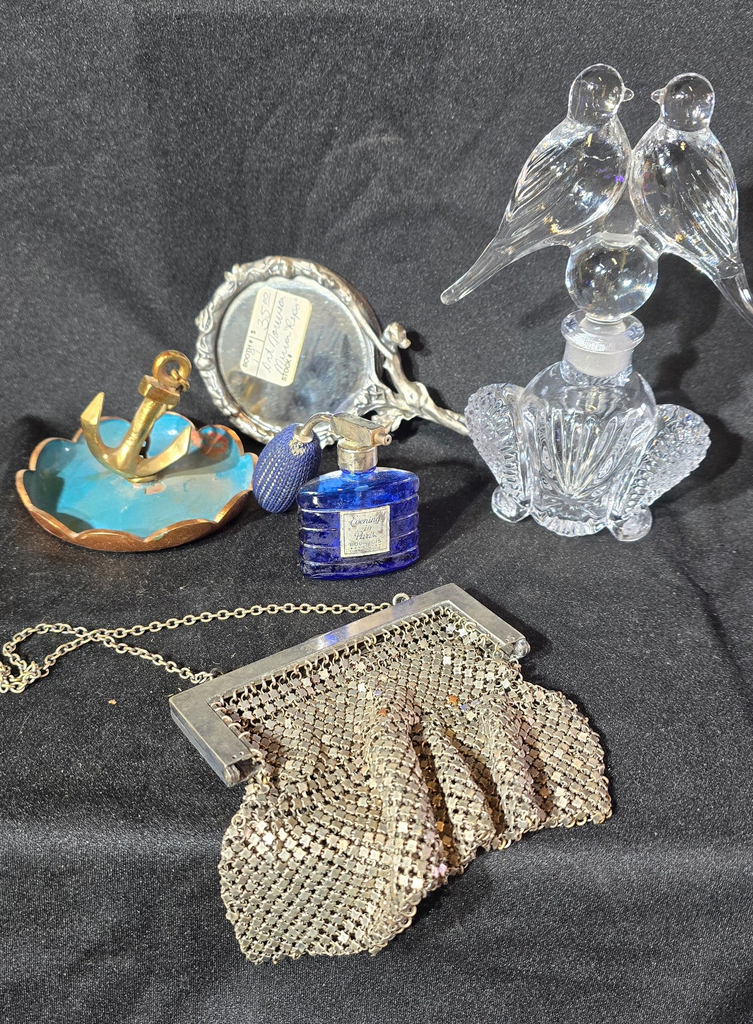 Ladies Metal Mesh Purse And Perfume Bottles