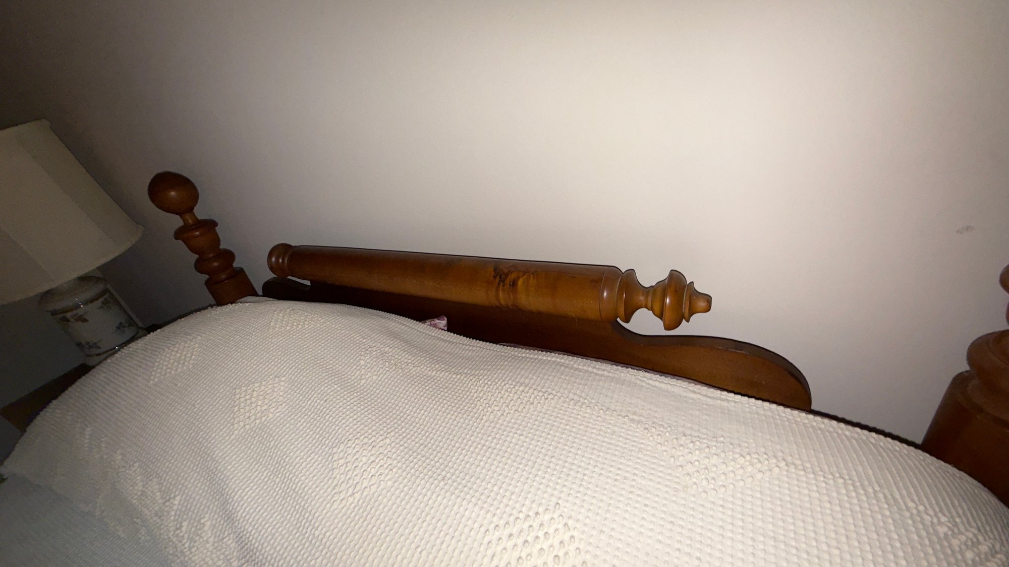 Antique maple rope bed with incredibly crazy comfortable mattress that is in like new condition full size this bed sits way up off the floor and requires the little stool that comes with it. The quality is impeccable.