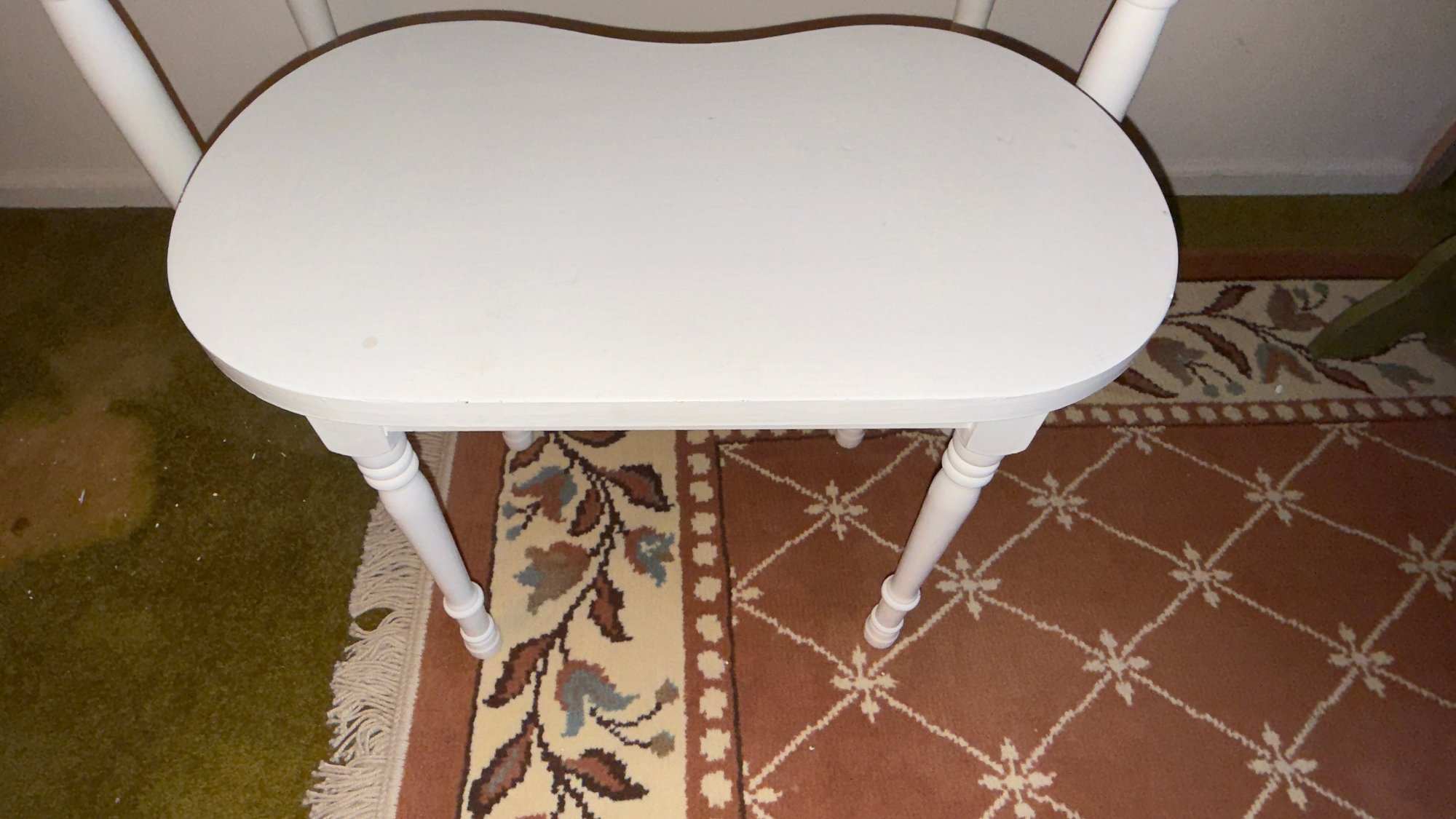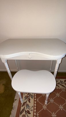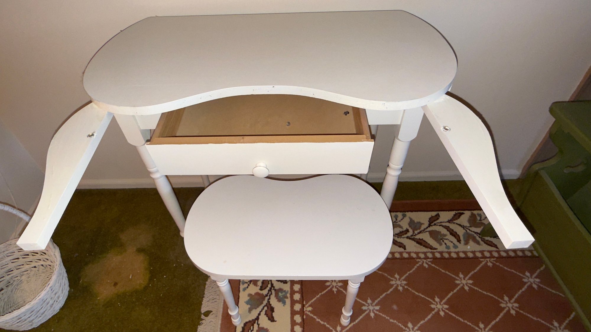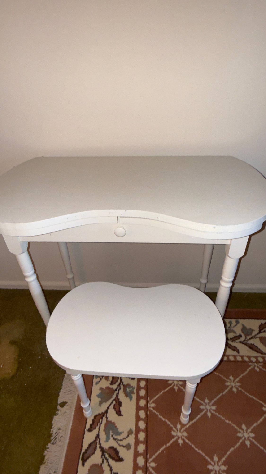 Antique White Wood Vanity With Seating. Could also work as a small children’s desk.