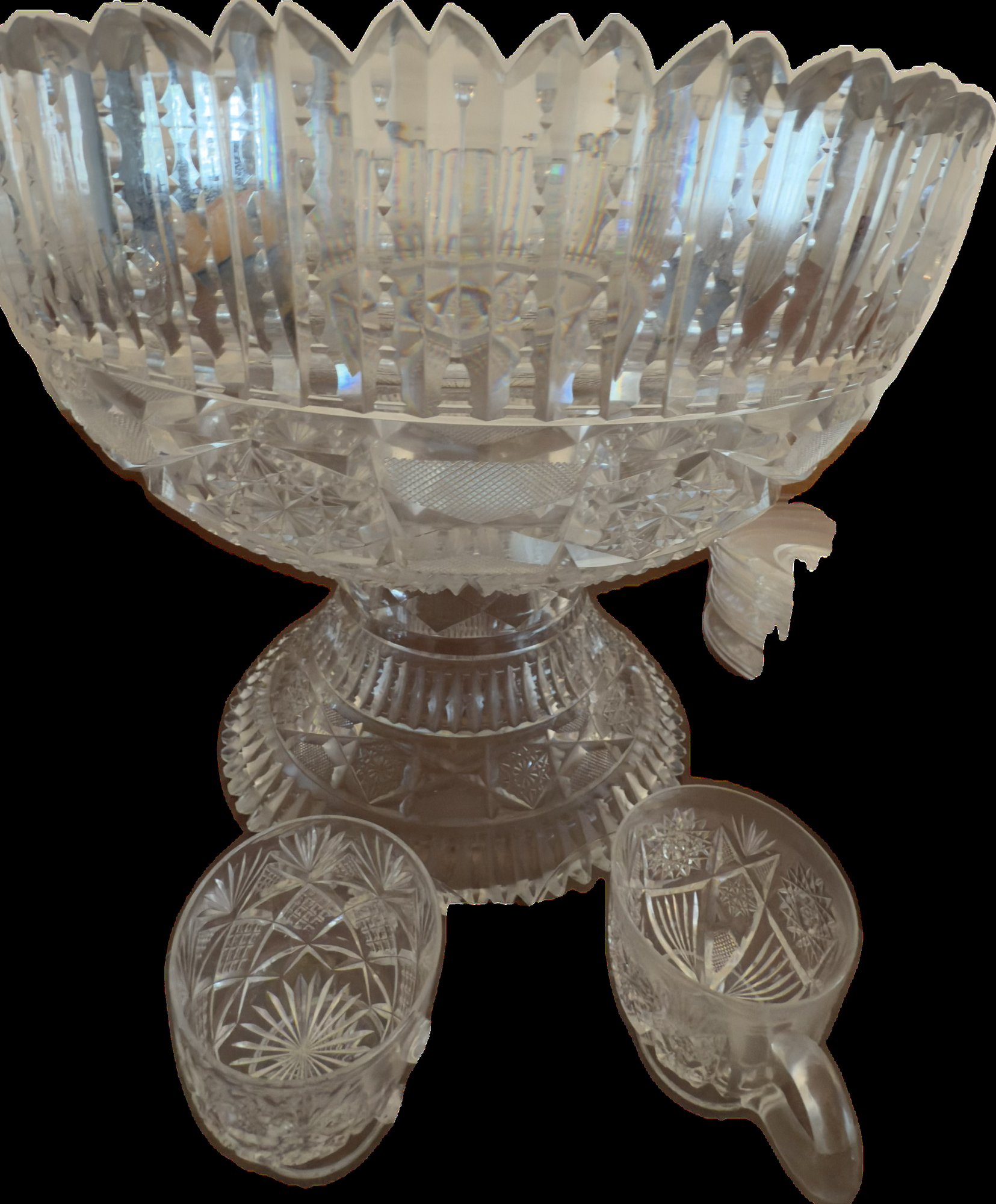 Incredible Leaded Glass Crystal Punchbowl Set - VERY HIGH-END! Listen here: