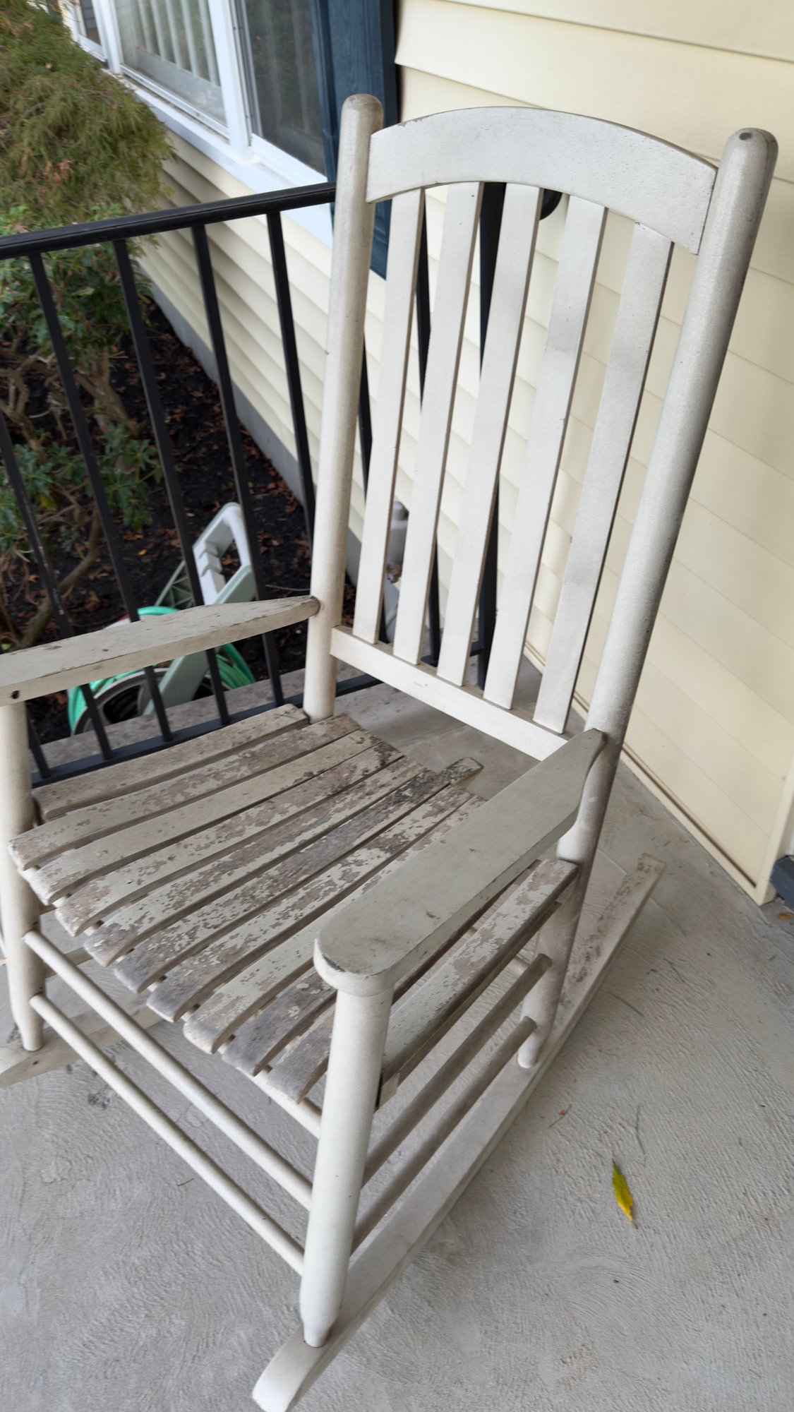 Solid wood outdoor rocker. White will need some TLC otherwise solid.