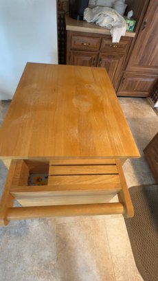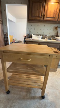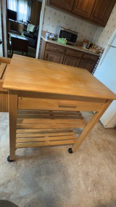 wooden kitchen island cart with a butcher block top