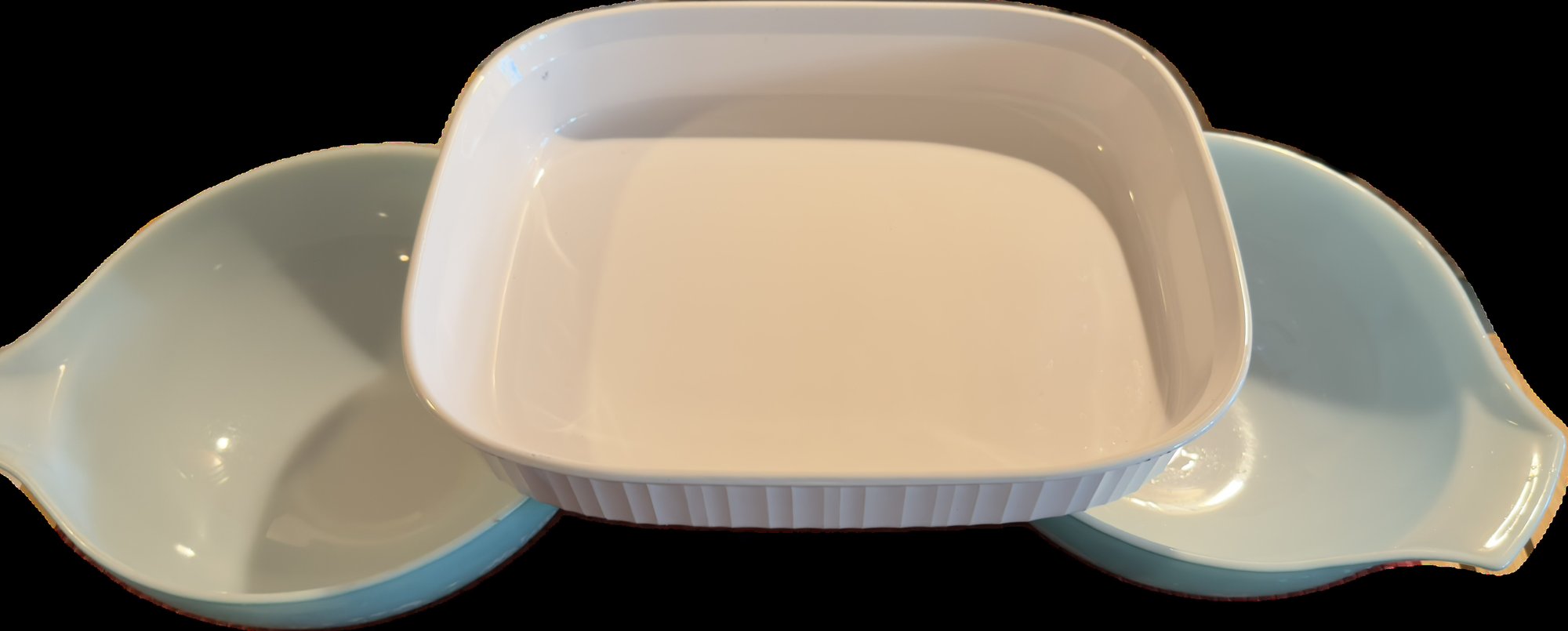 Pyrex Amish Butterprint (2 Bowls) & Corning French White Baking Dish. Nice lot of 3 items!
