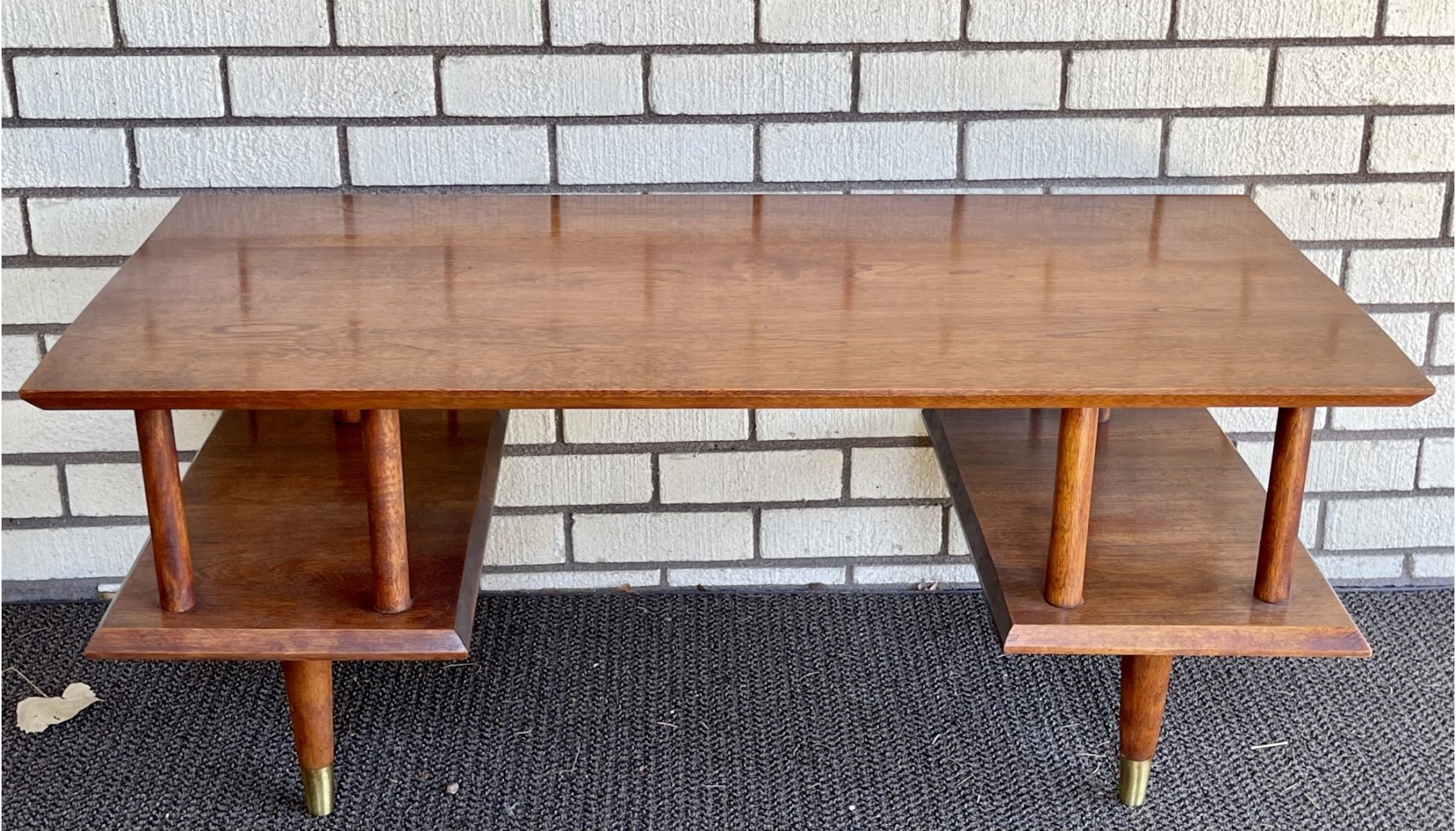 Sturdy in good condition. Unmarked. Light wear including small scuffs. Measures 41"W x 21"D x 17"H