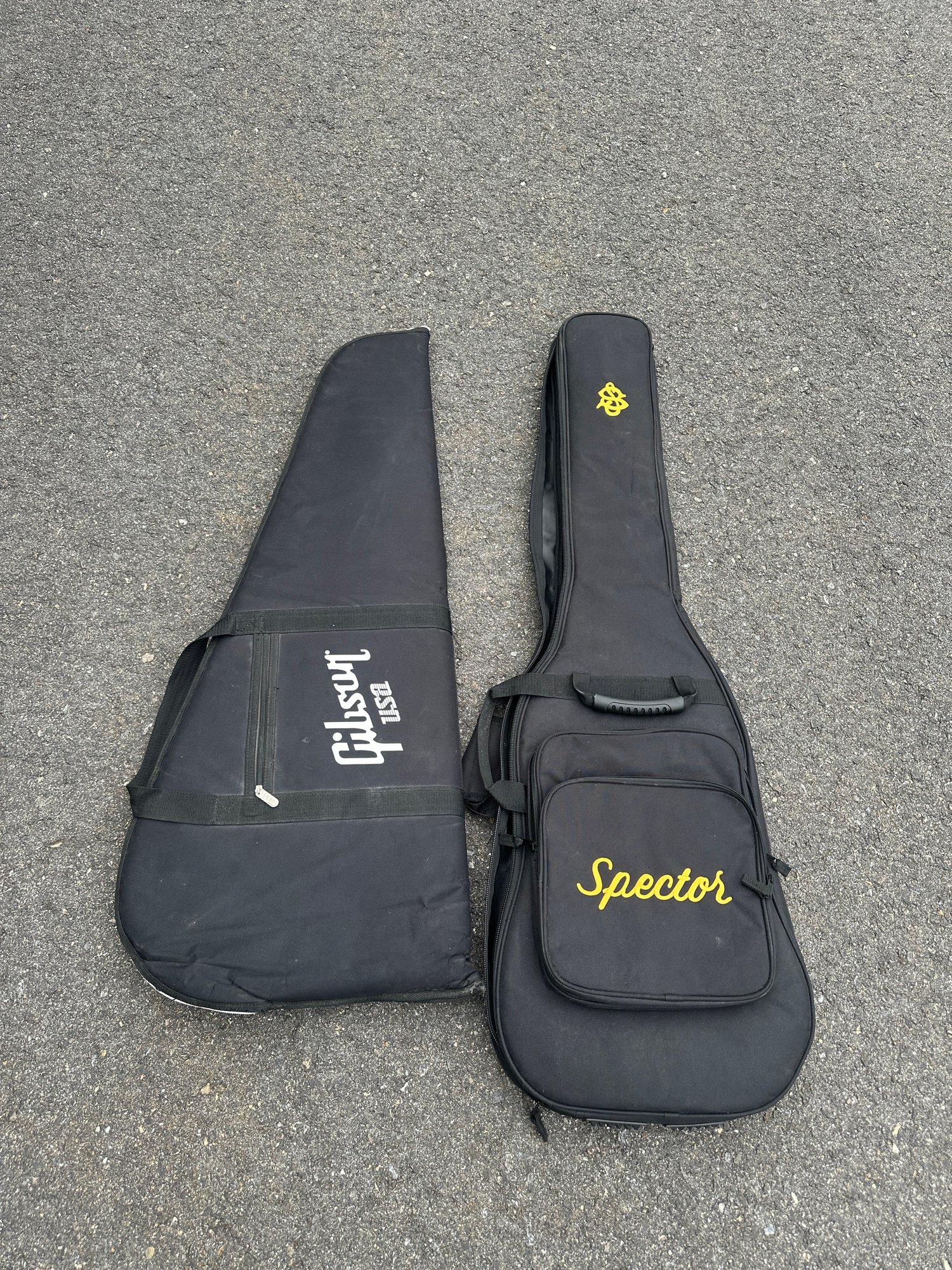 Both bags are designed for standard electric guitars and feature padded interiors for protection.