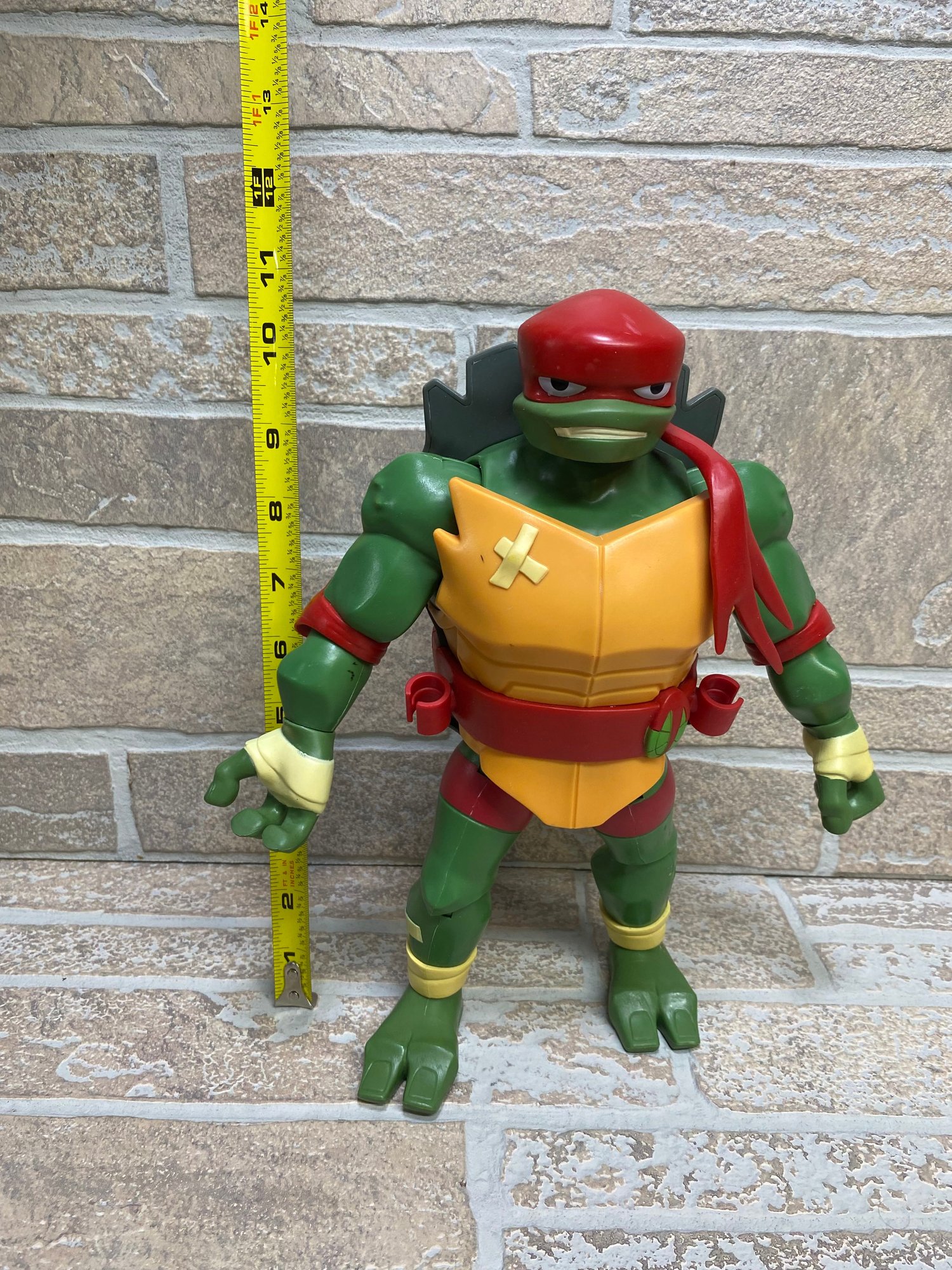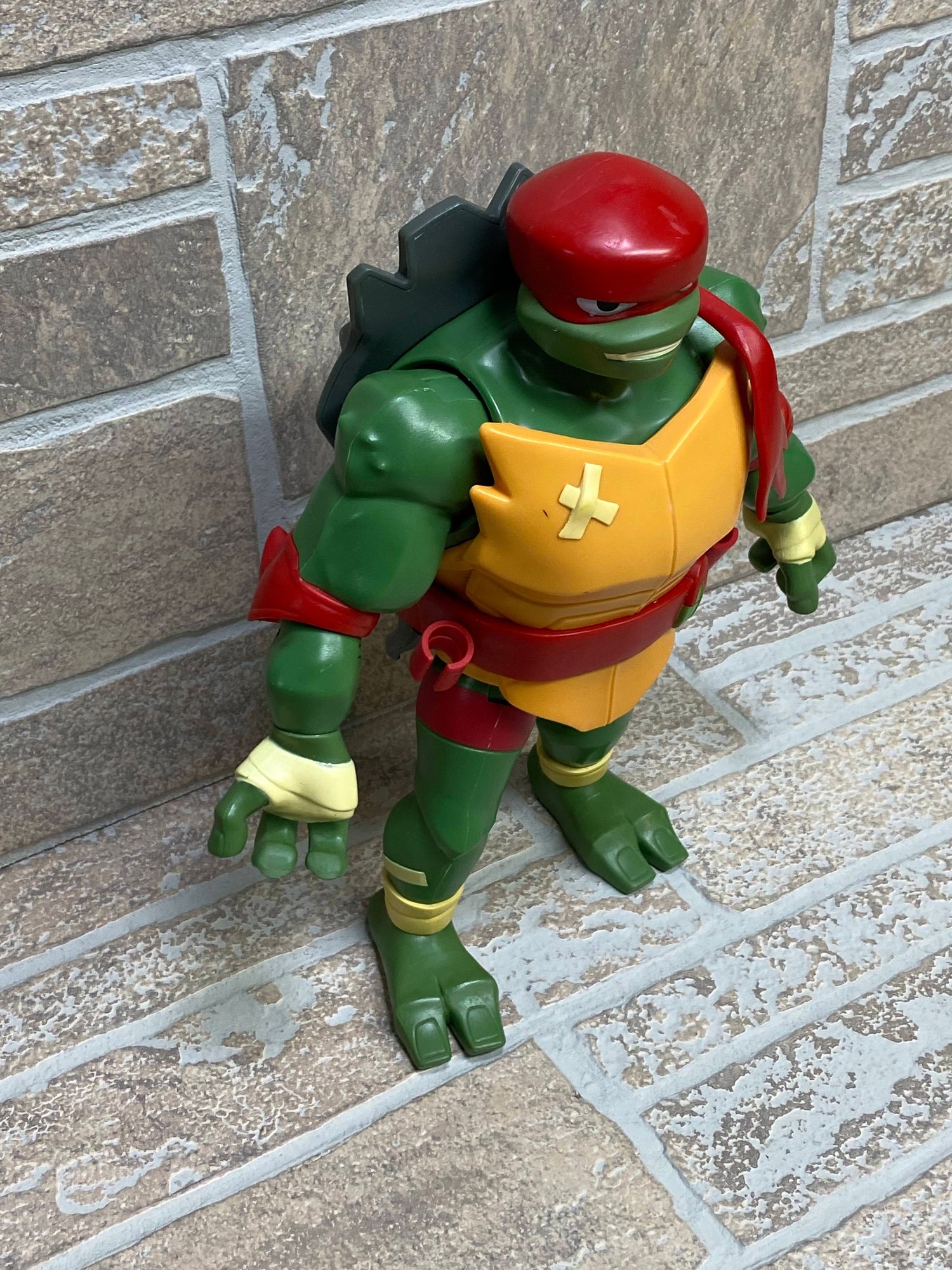 Large Teenage Mutant Ninja Turtles Raphael action figure produced by Playmates Toys (2018). Features classic red mask and detailed sculpt with articulated arms and legs. A great display piece for TMNT fans or collectors.