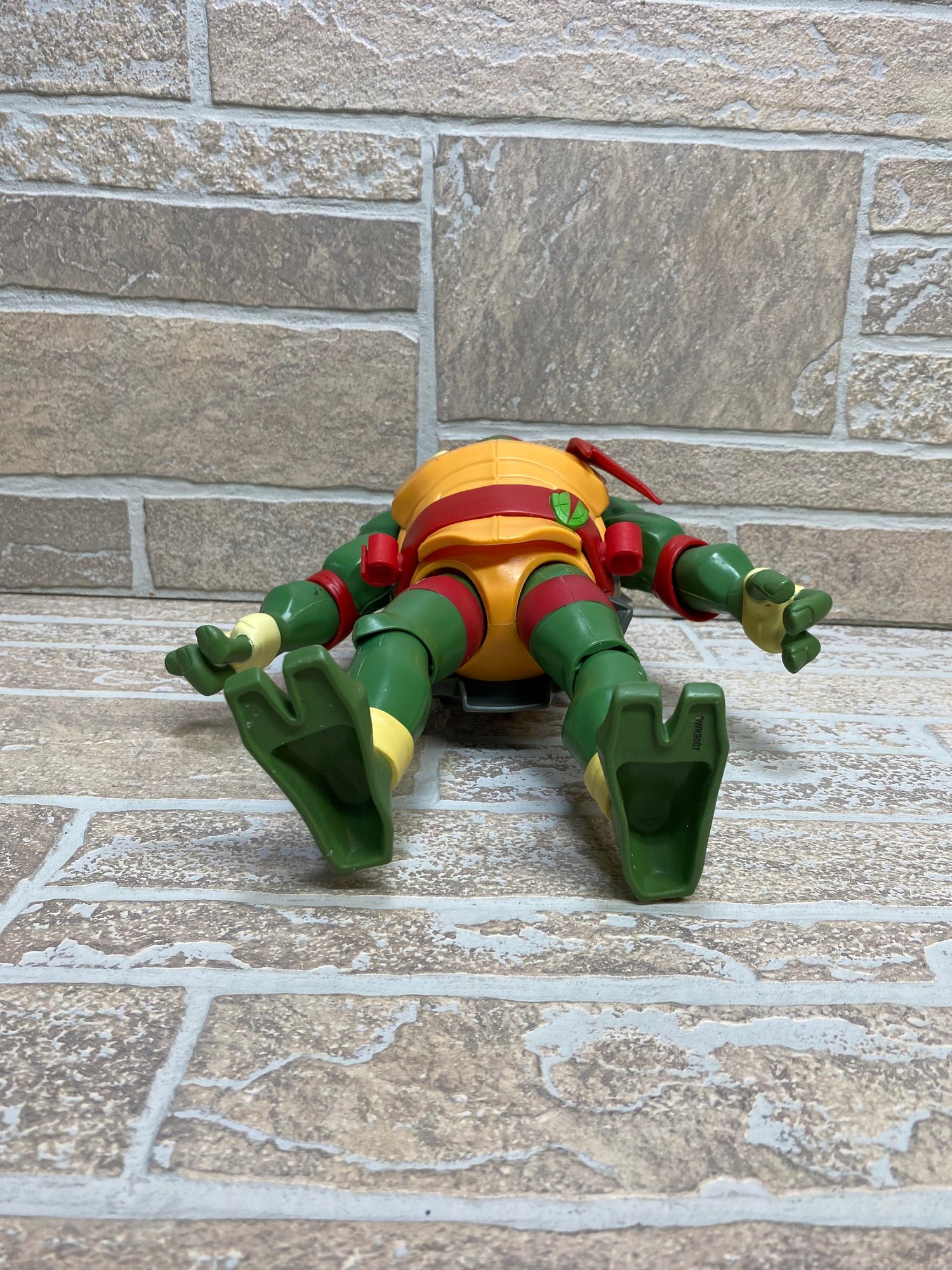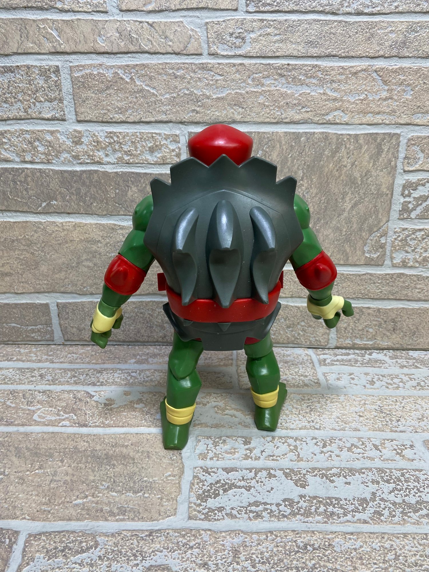 Notes: Pre-owned condition with visible play wear including scuffs, marks, and paint wear (see photos). Missing accessories (no weapons). Joints appear intact and figure stands on its own. Back shell is attached and in good condition. Overall still displays well.