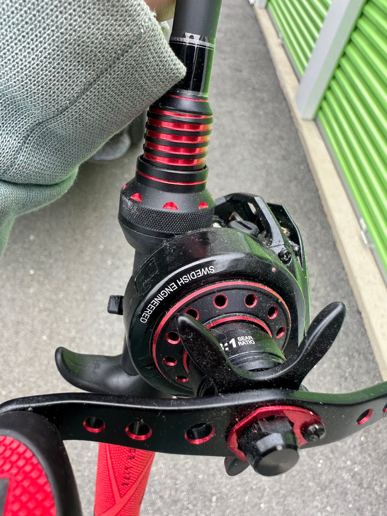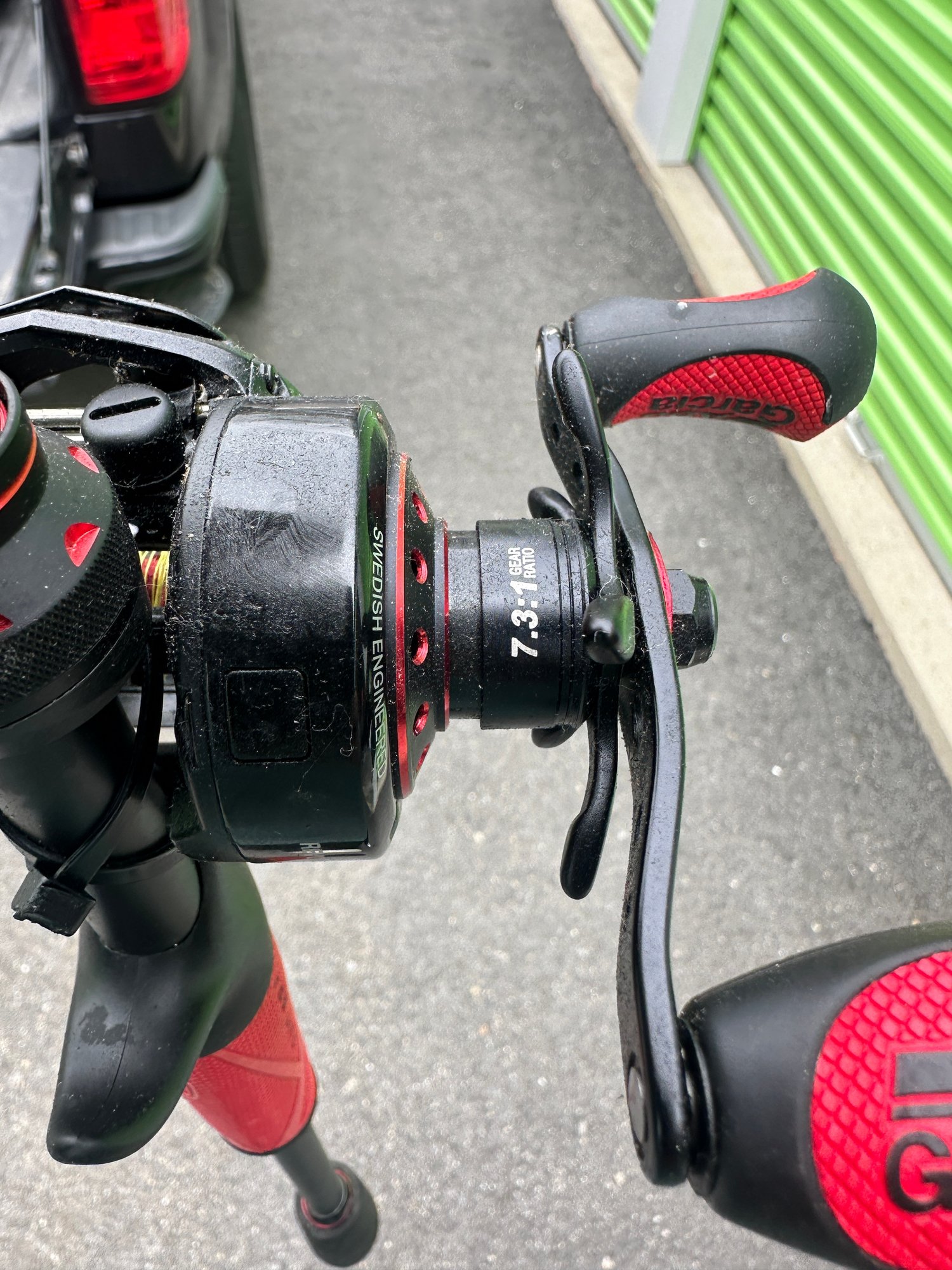 Notes: Pre-owned with light wear from use Reel turns smoothly Cosmetic wear present (minor scuffs/surface marks) Tip guide appears slightly bent/damaged (see photo) – may need repair/replacement depending on use Overall solid setup with lots of life left