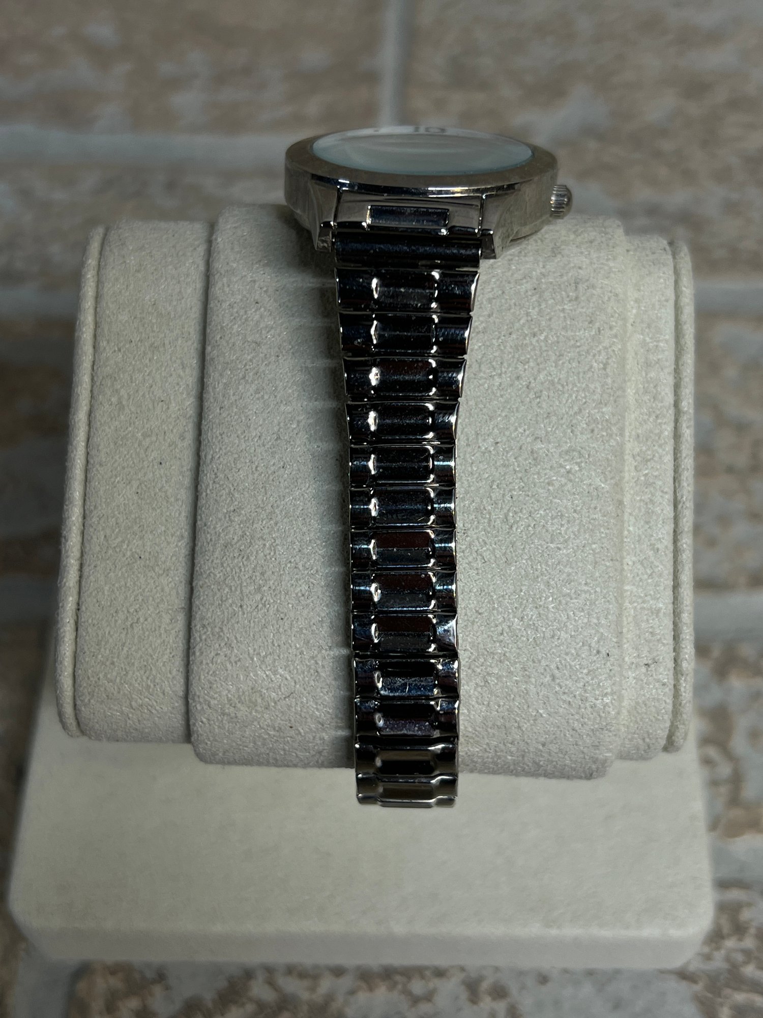 Women's silver-tone quartz dress watch by Accutime Watch Corp. in fair condition with visible wear.