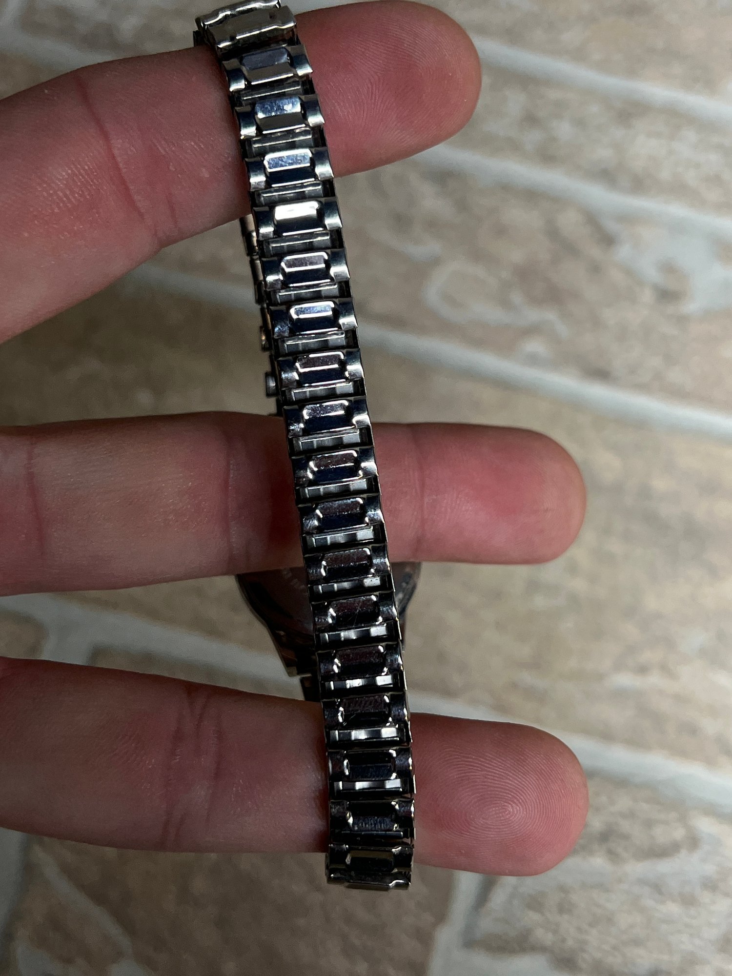 Condition: Fair — bracelet shows visible surface scratches and wear consistent with regular use. Dial appears clean. Battery status unknown.