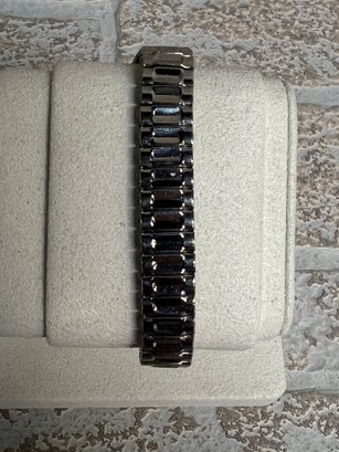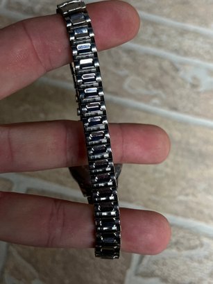 Bracelet: Silver-tone link bracelet with fold-over clasp