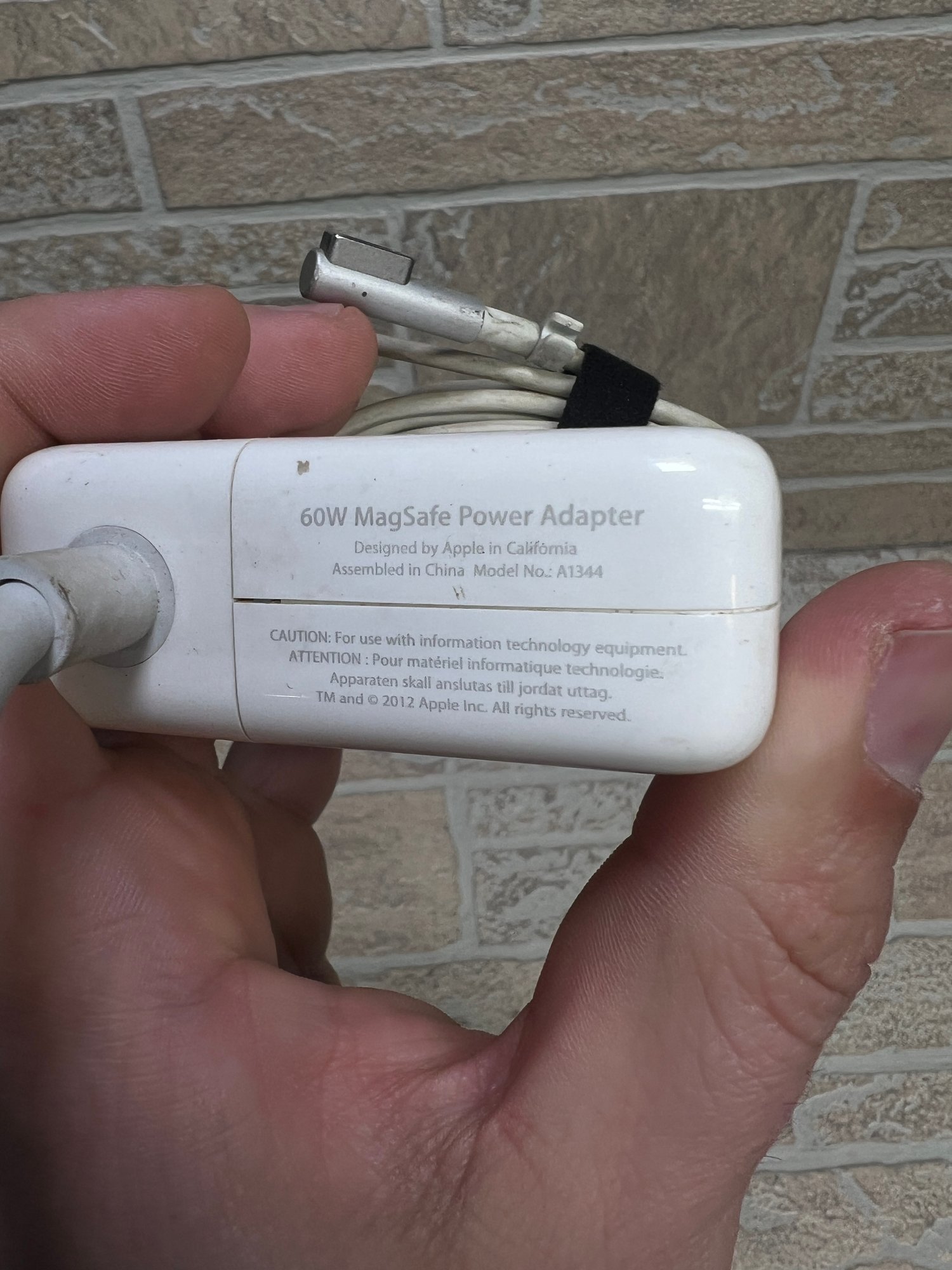 Apple 60W MagSafe Power Adapter, Model A1344. Designed for older Apple MacBook and MacBook Pro laptops using the MagSafe (not MagSafe 2) connector.