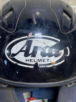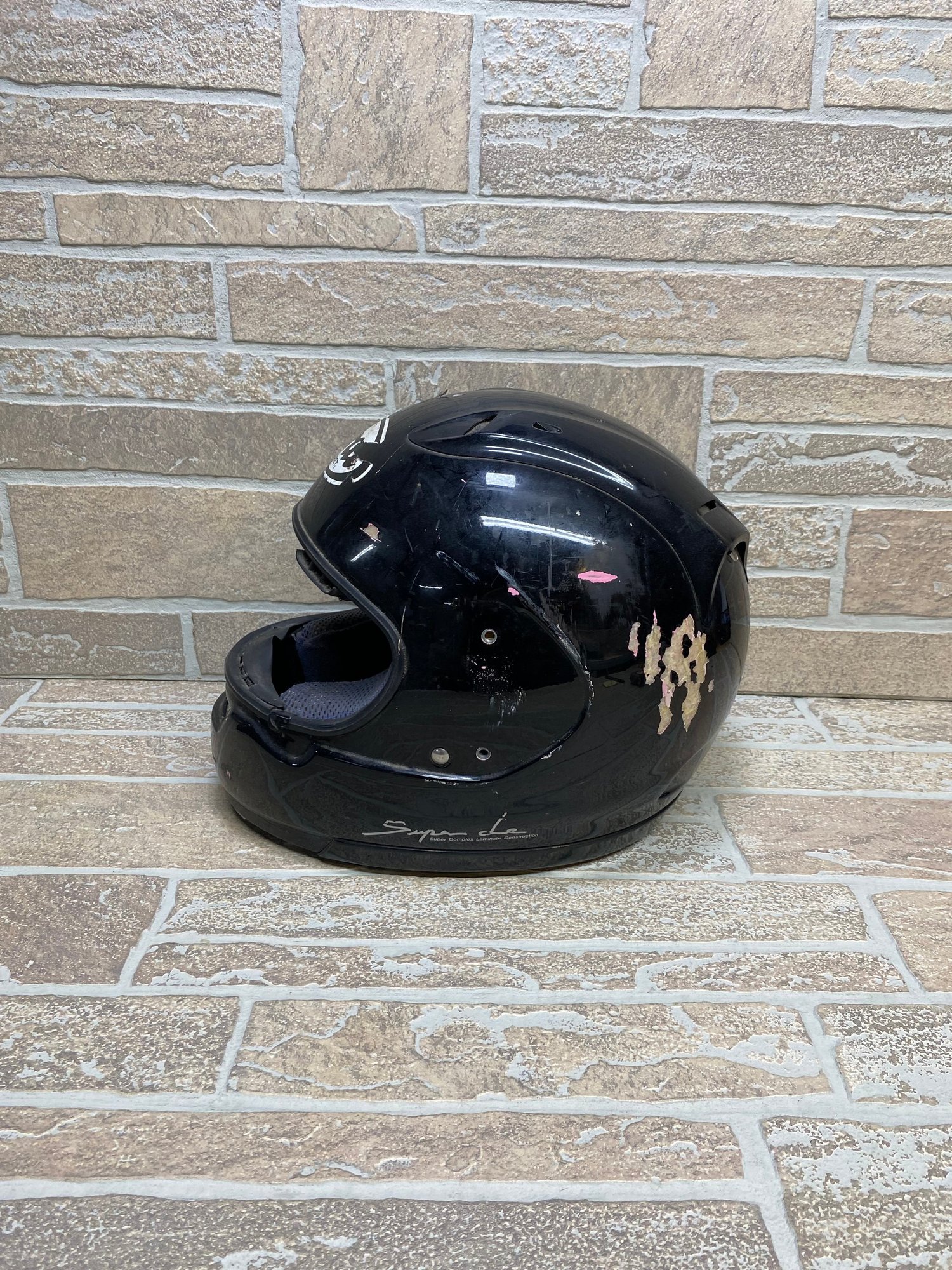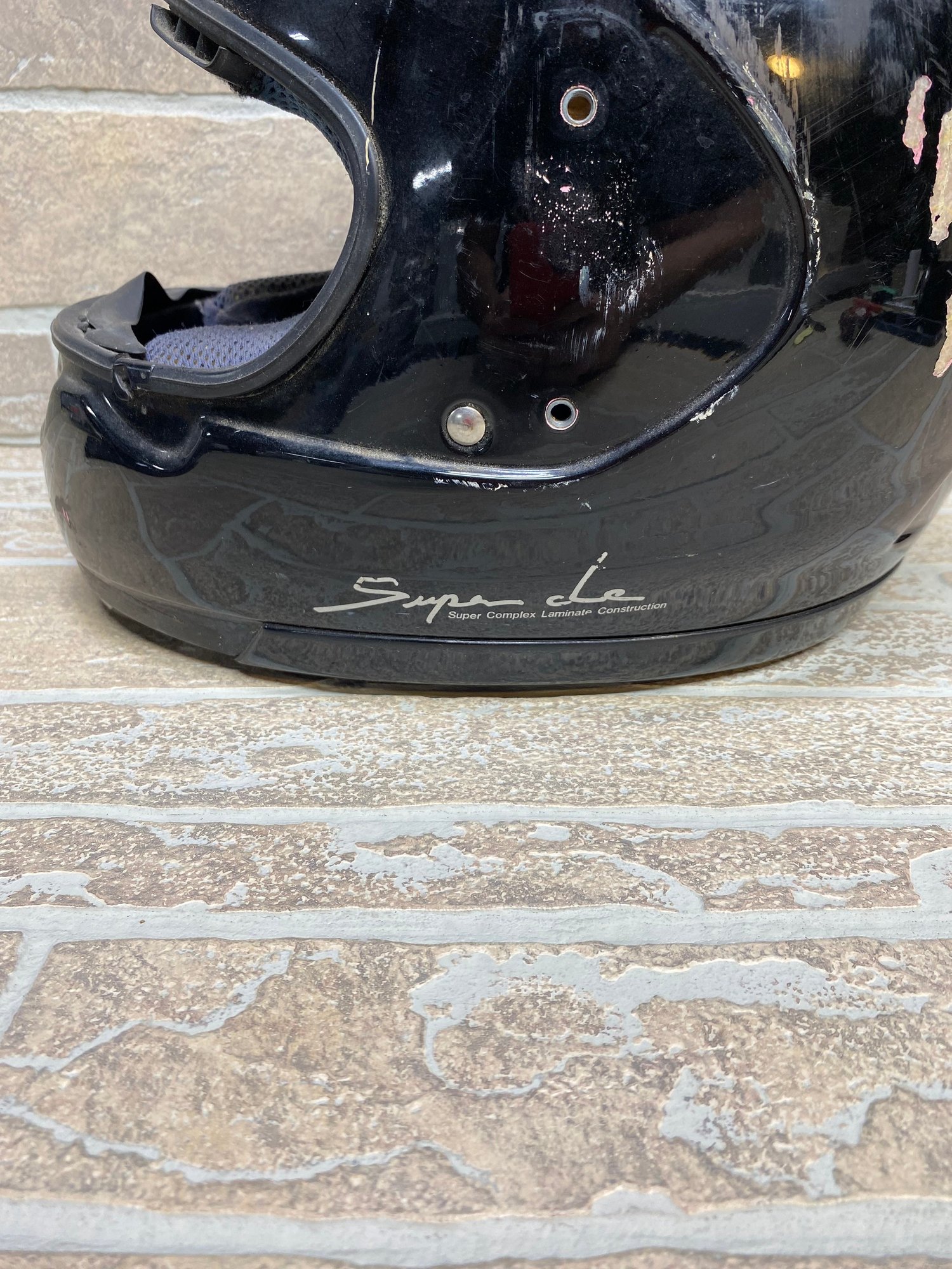 This is a high-end helmet model from Arai, known for quality construction and safety standards (Snell & DOT rated). Features ventilation ports, padded interior lining, and classic aerodynamic shell design.