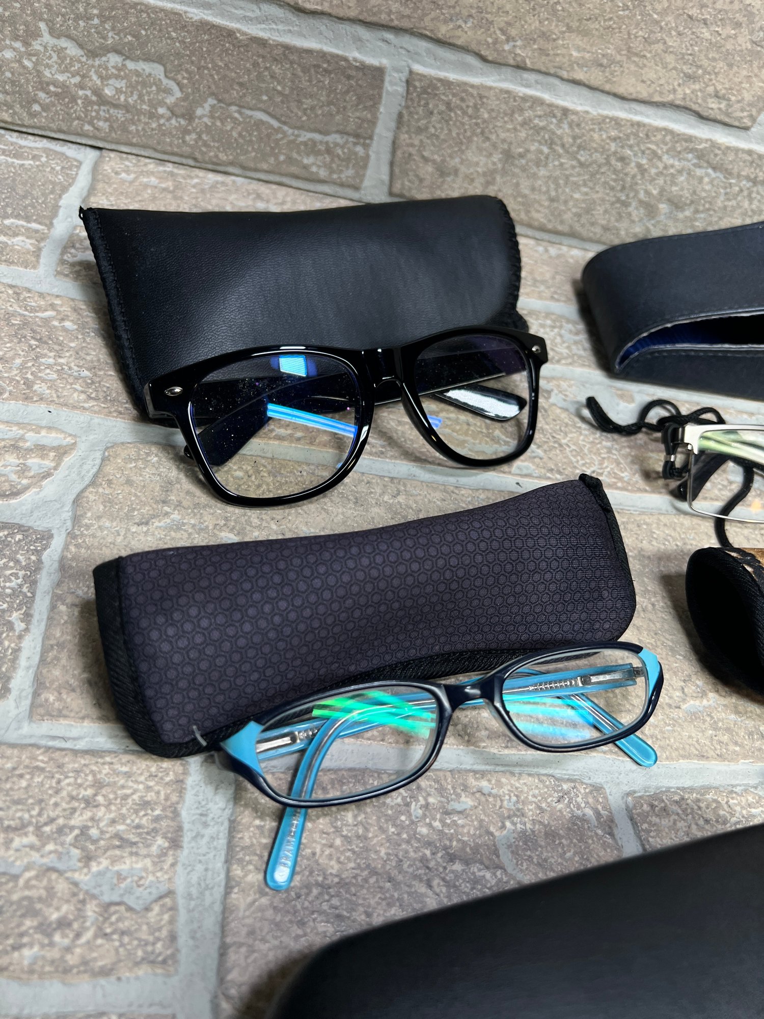 Multiple eyeglass frames (clear lenses / prescription unknown)