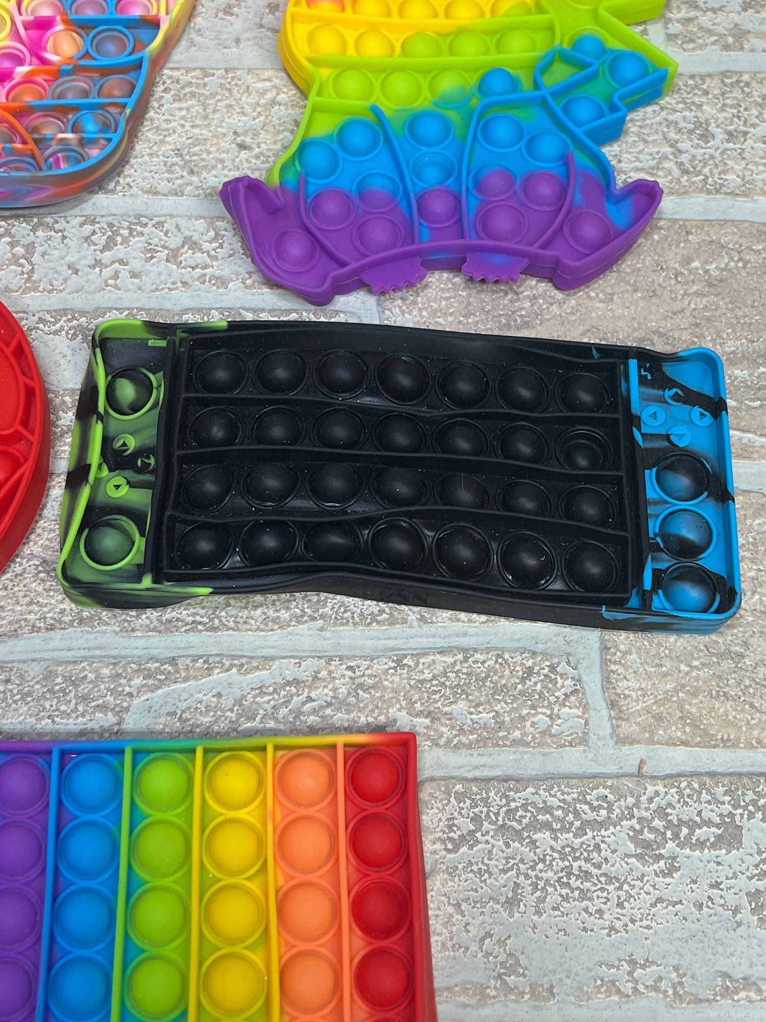 Mixed lot of colorful silicone “Pop-It” fidget toys in a variety of fun shapes and sizes. Great for stress relief, sensory play, classrooms, or resale.