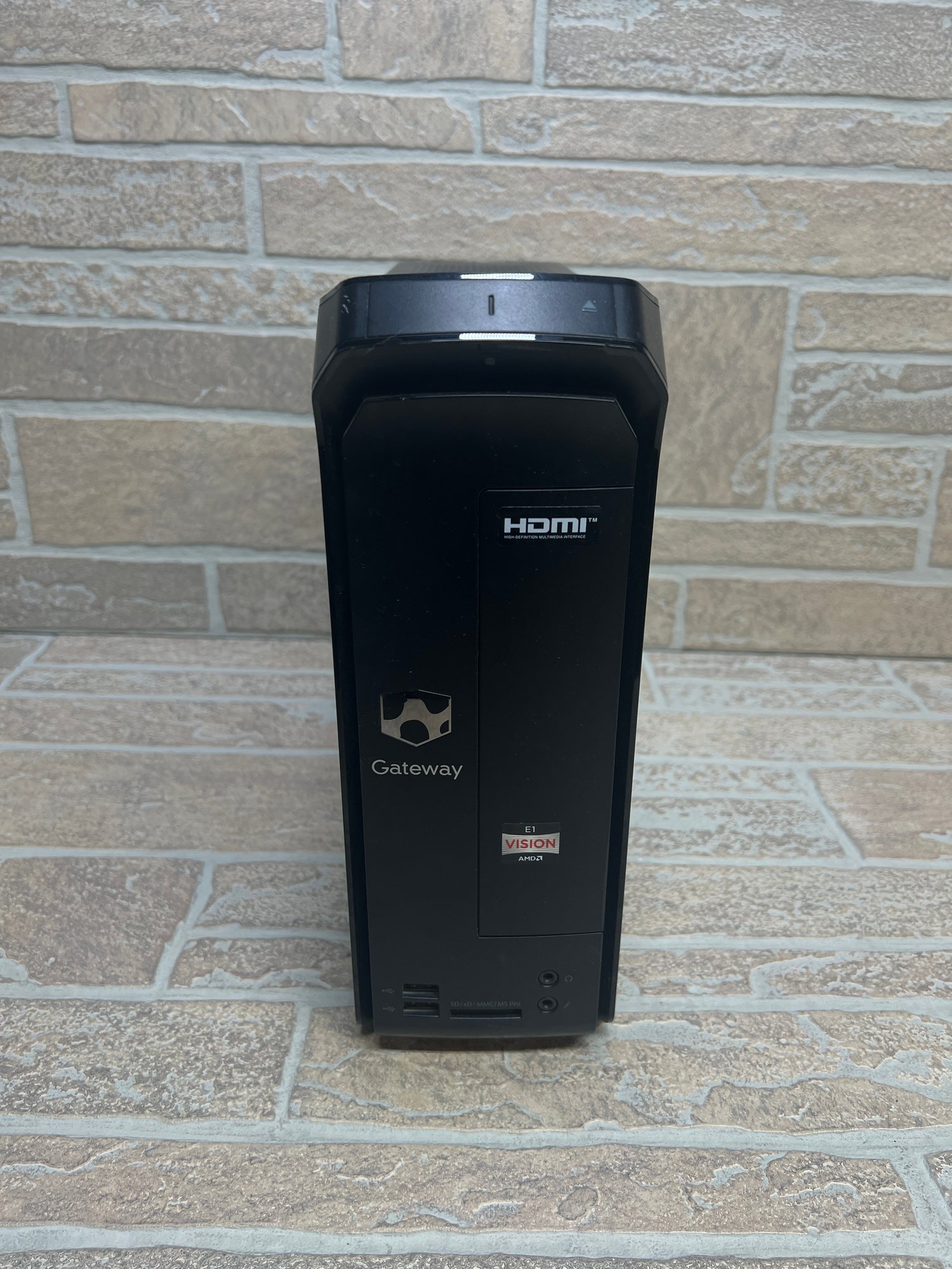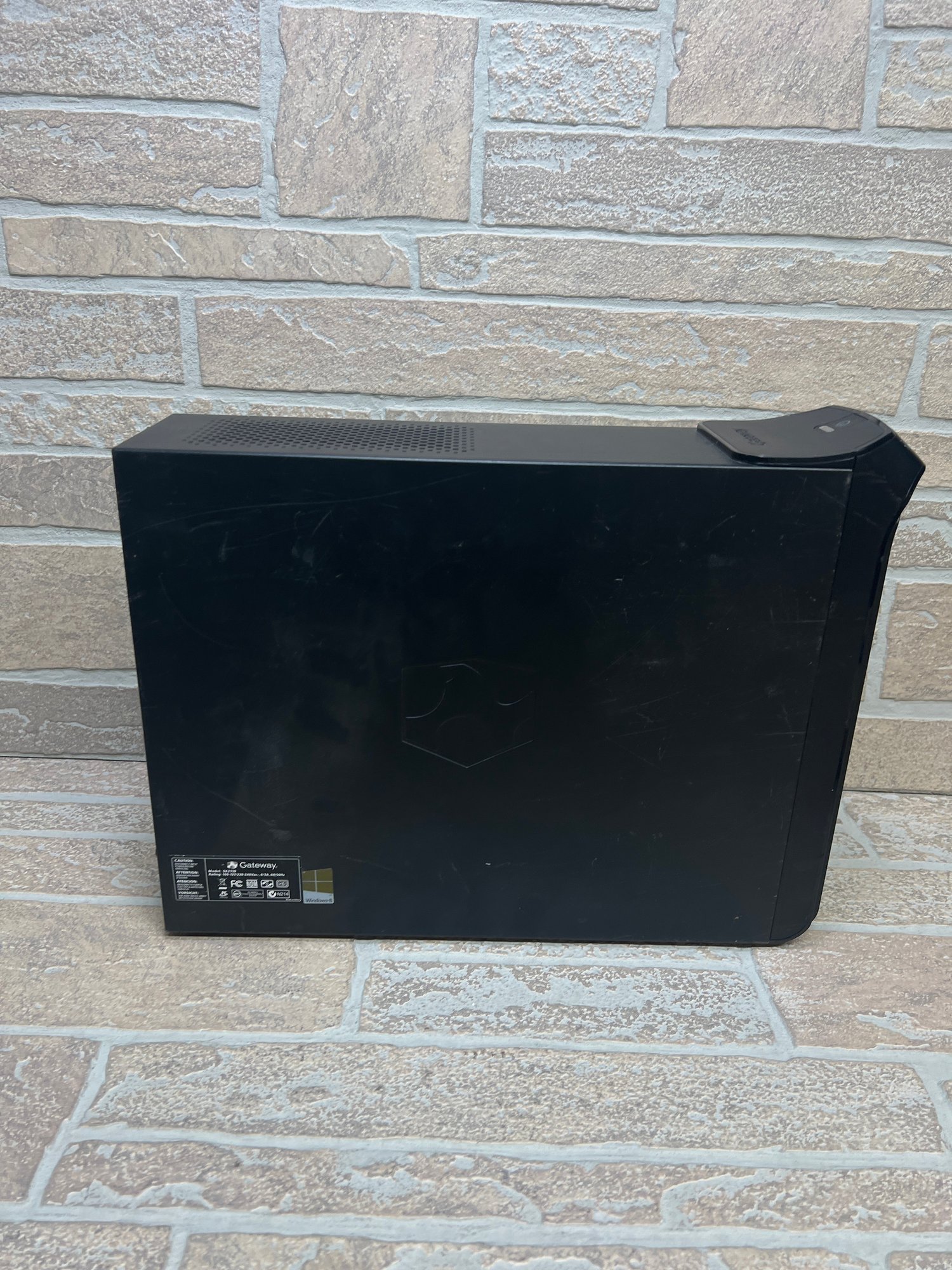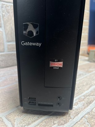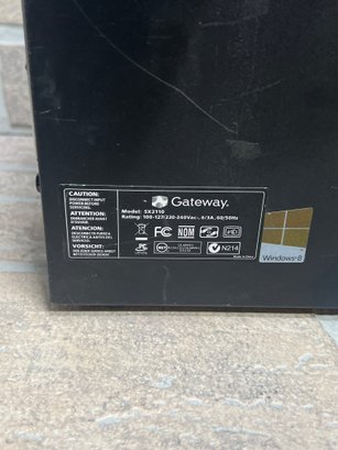 Gateway SX2110 compact desktop computer tower. This unit features an AMD E1 processor platform and originally came with Windows 8 (COA sticker present).
