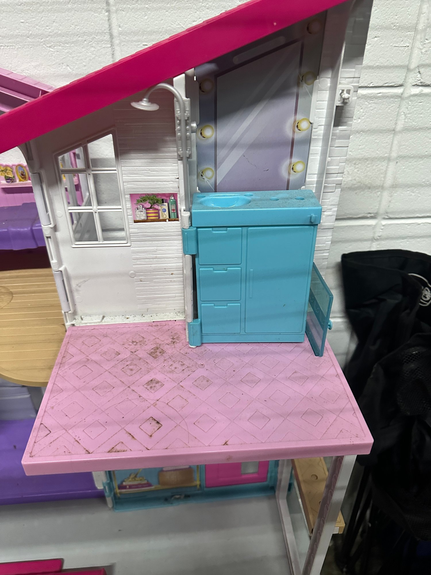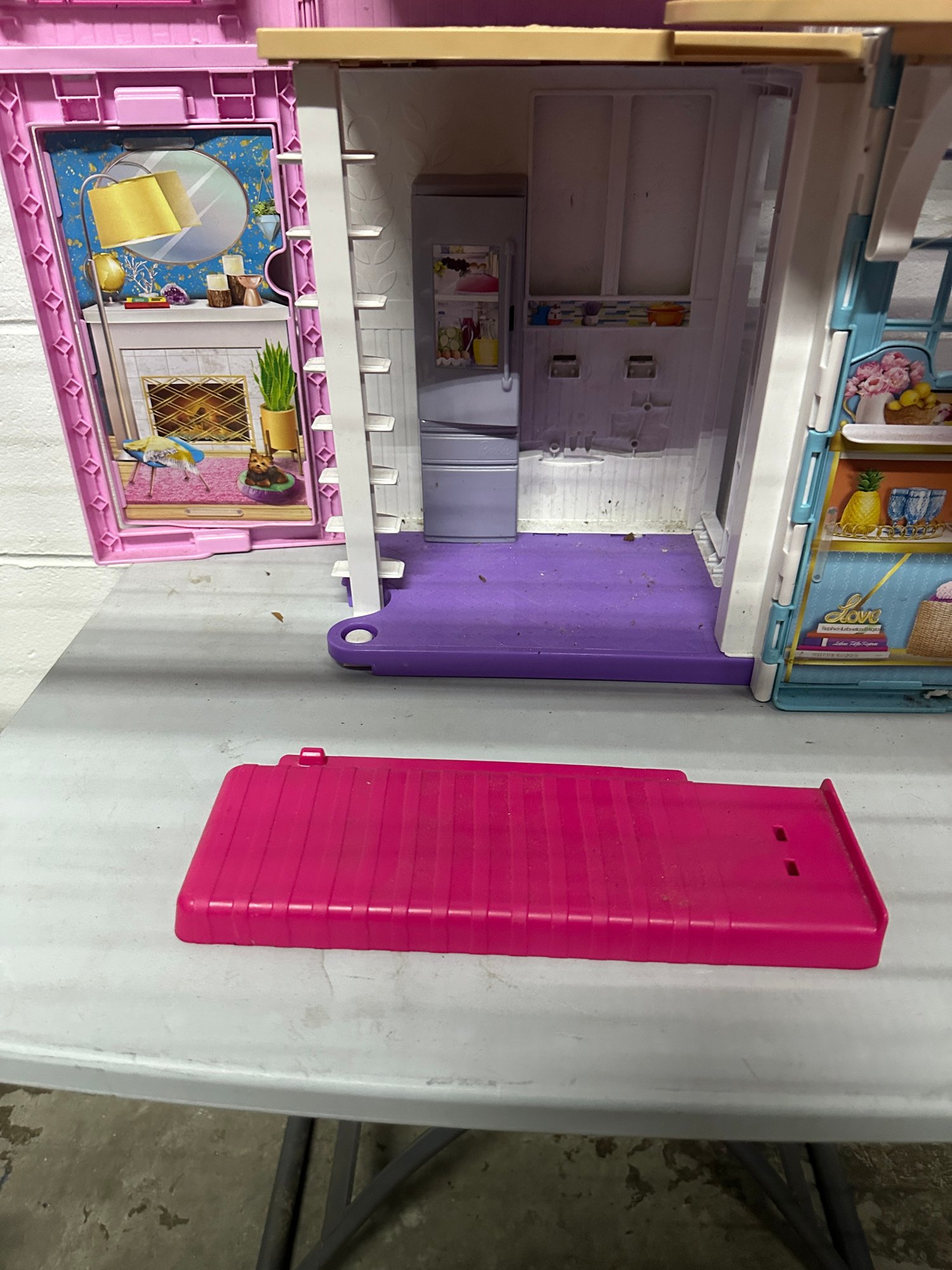Notes: Good pre-owned condition Shows general play wear, scuffs, and dirt marks Some discoloration/staining on floors and surfaces May be missing pieces or accessories (not a complete set) Structurally intact; folds and opens properly