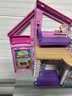 Colorful Barbie fold-up dollhouse playset featuring a multi-level design with bright pink, purple, and teal accents.