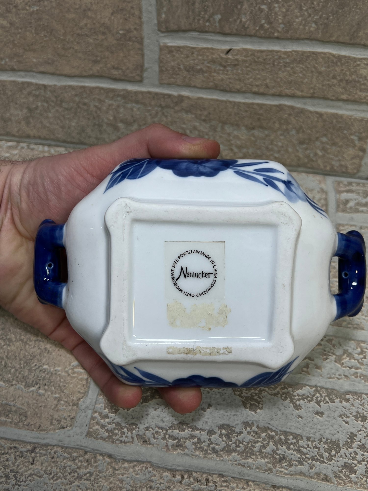 (1) Lidded dish with handles (Nantucket branding on bottom)