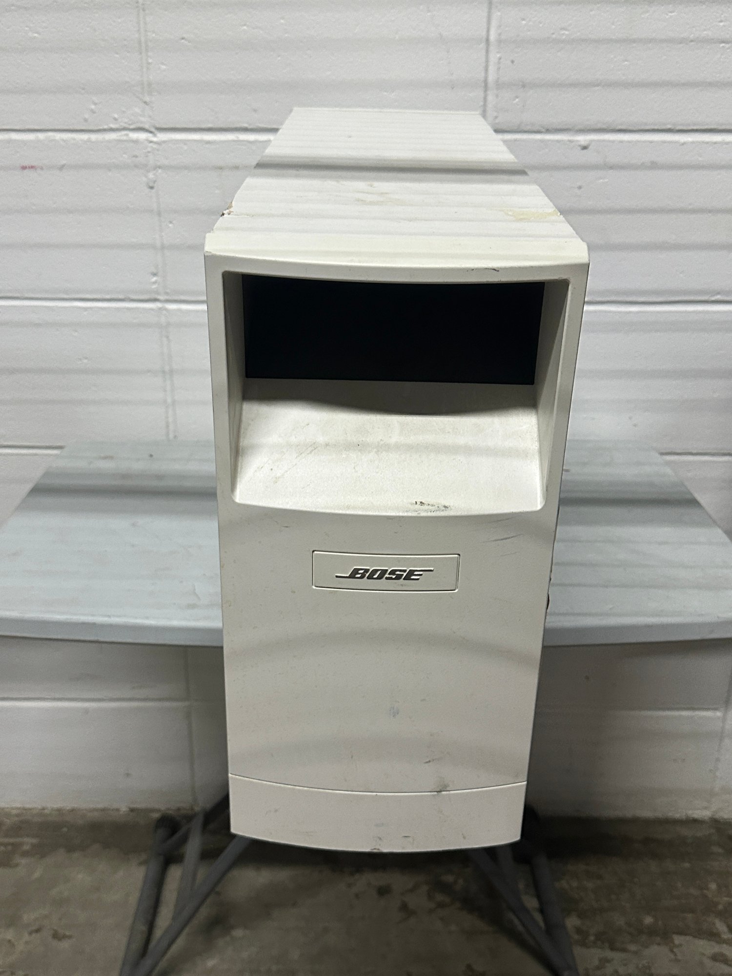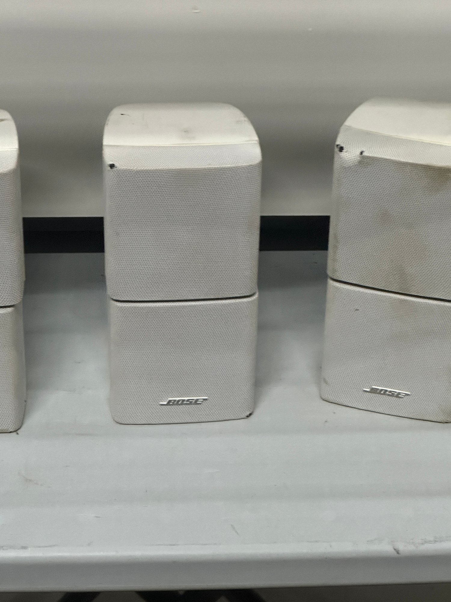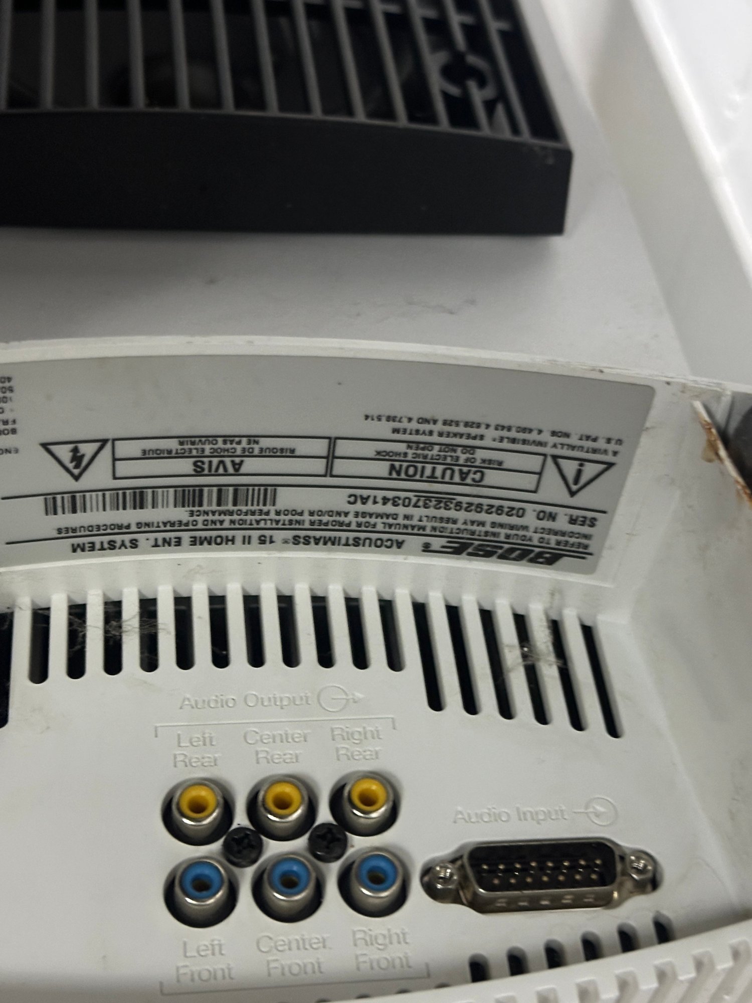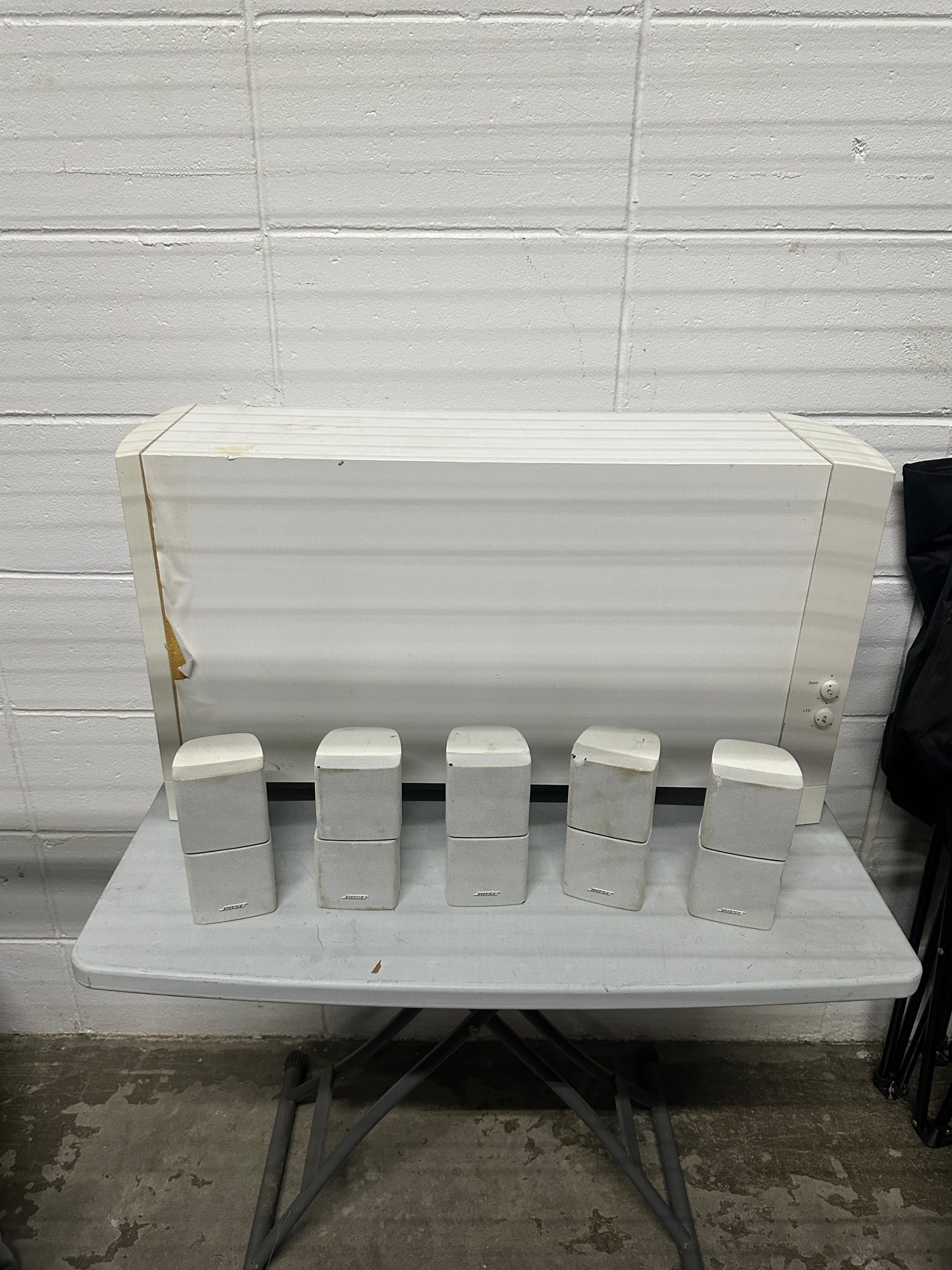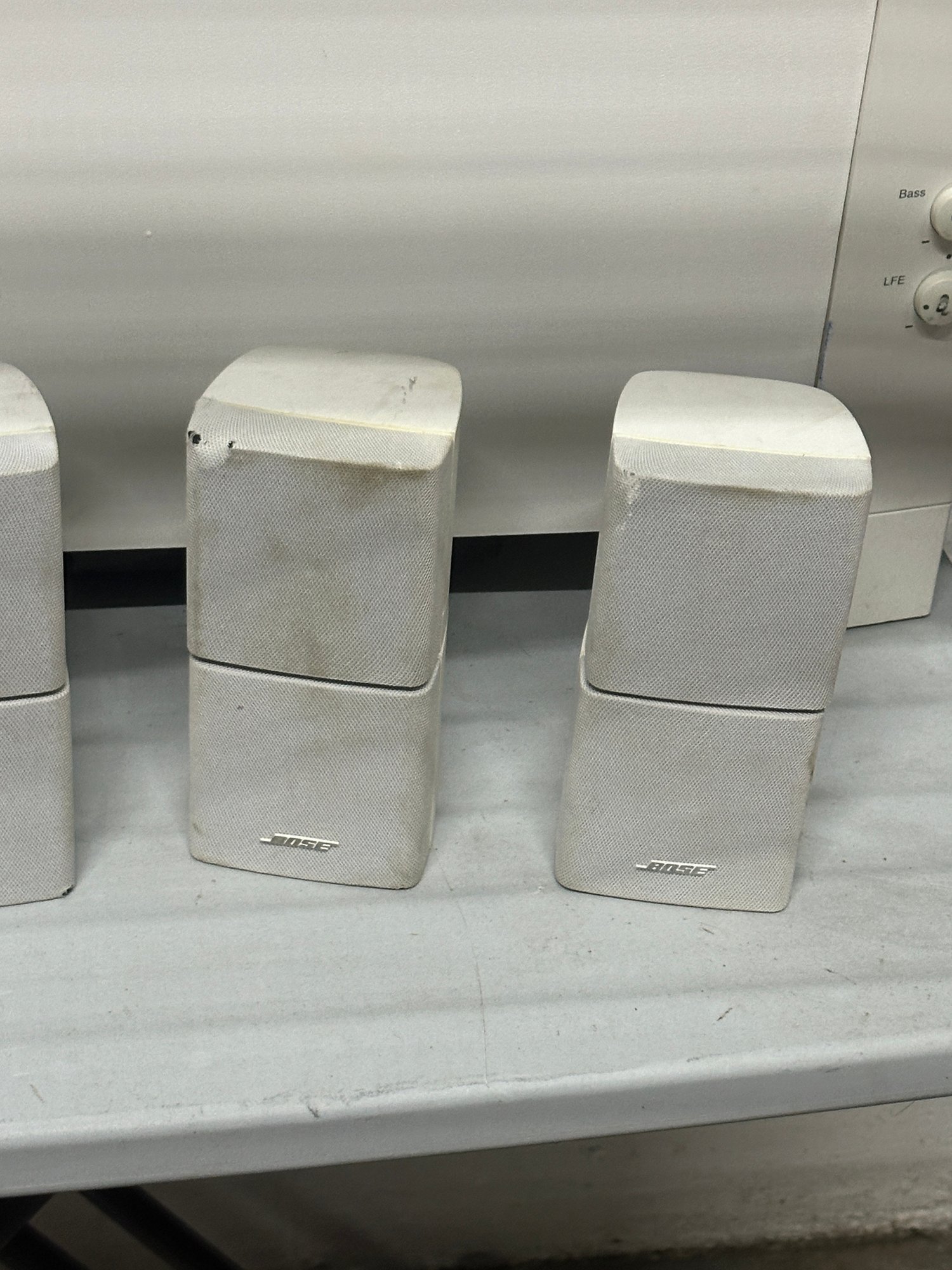 Bose Acoustimass 15 Series II home theater speaker system including bass module (subwoofer) and multiple cube speakers.