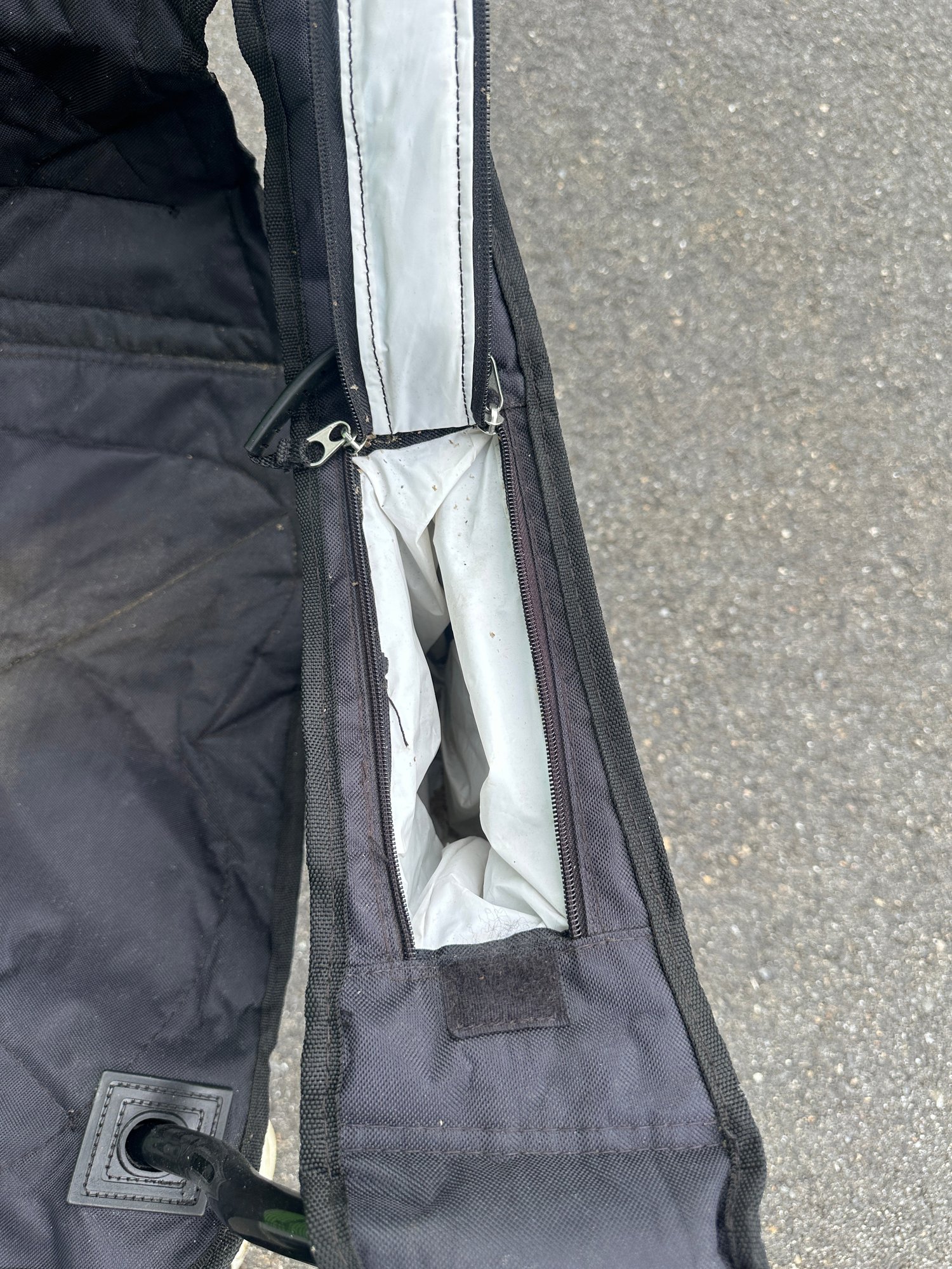 Notes: Pre-owned with visible wear from use (dust, staining, general dirt – see photos) Fabric shows cosmetic wear but no major tears observed Frame appears solid and functional Carry bag included and usable