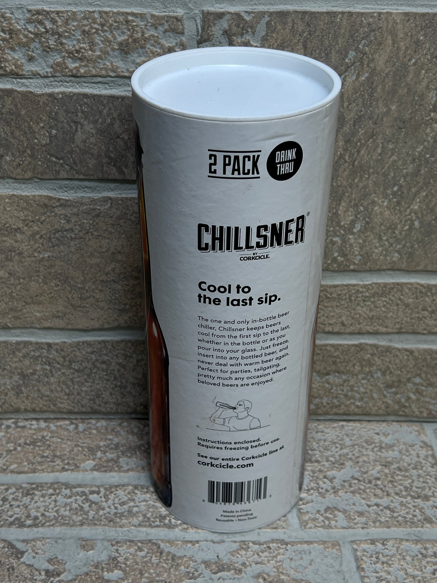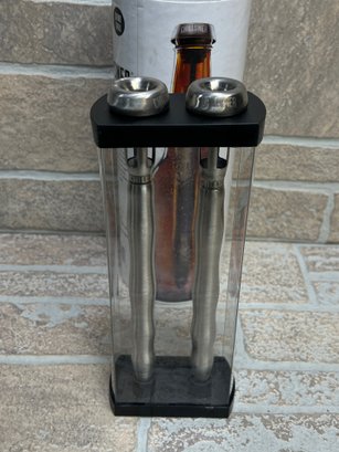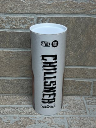 Set of (2) Corkcicle “Chillsner” beer chiller sticks designed to keep bottled beverages cold from the first sip to the last. Simply freeze the stainless steel chiller, insert into your bottle, and enjoy chilled drinks without dilution.
