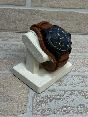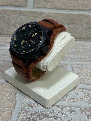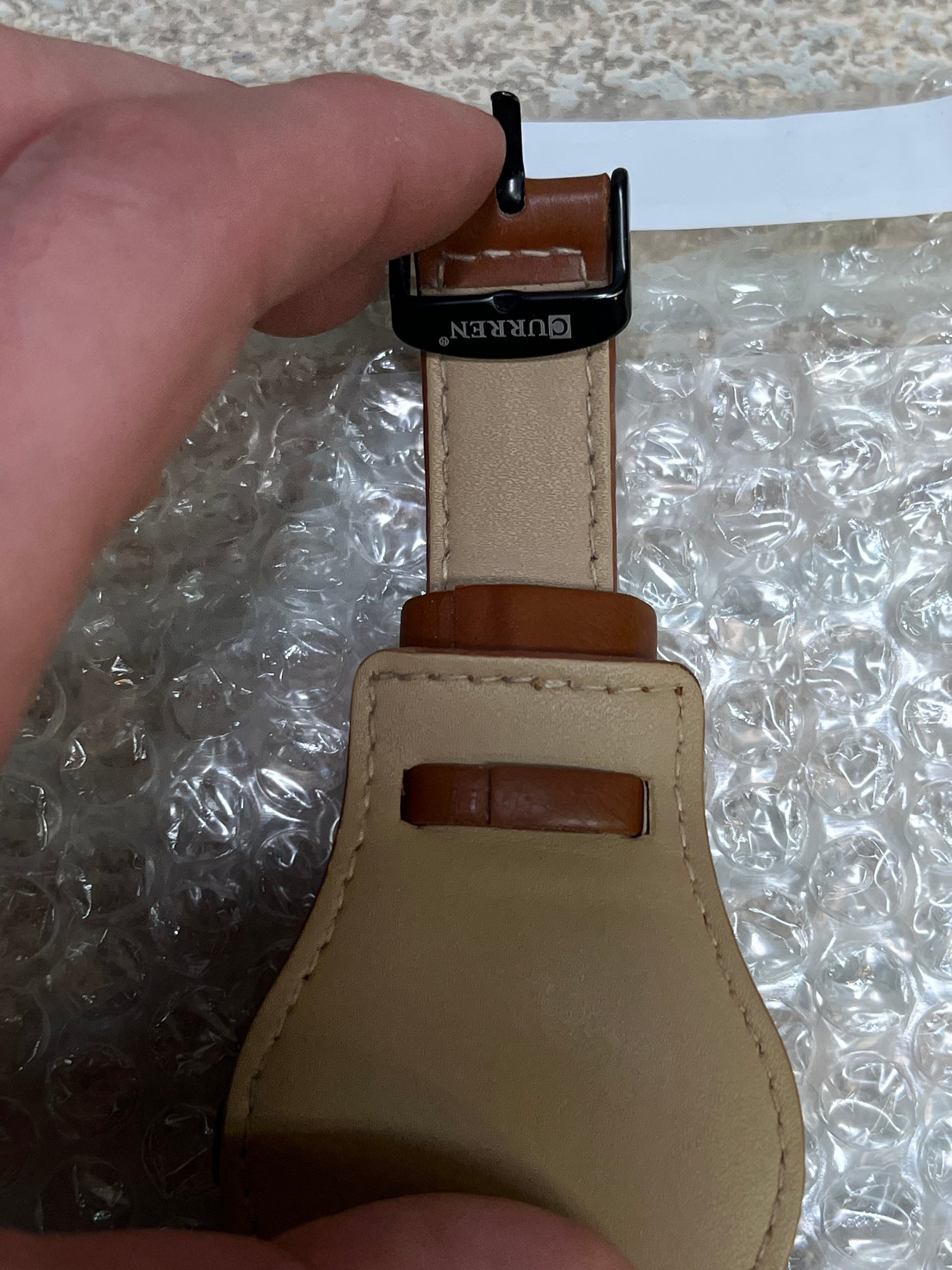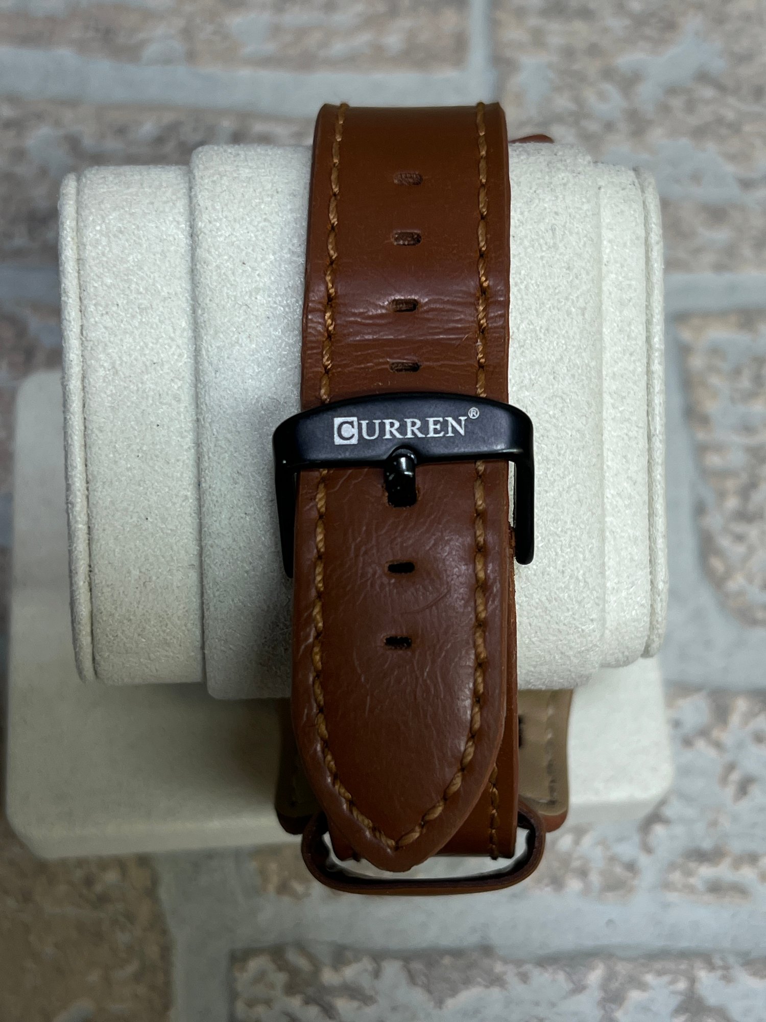 Strap: Brown genuine leather with contrast stitching and black Curren-branded buckle