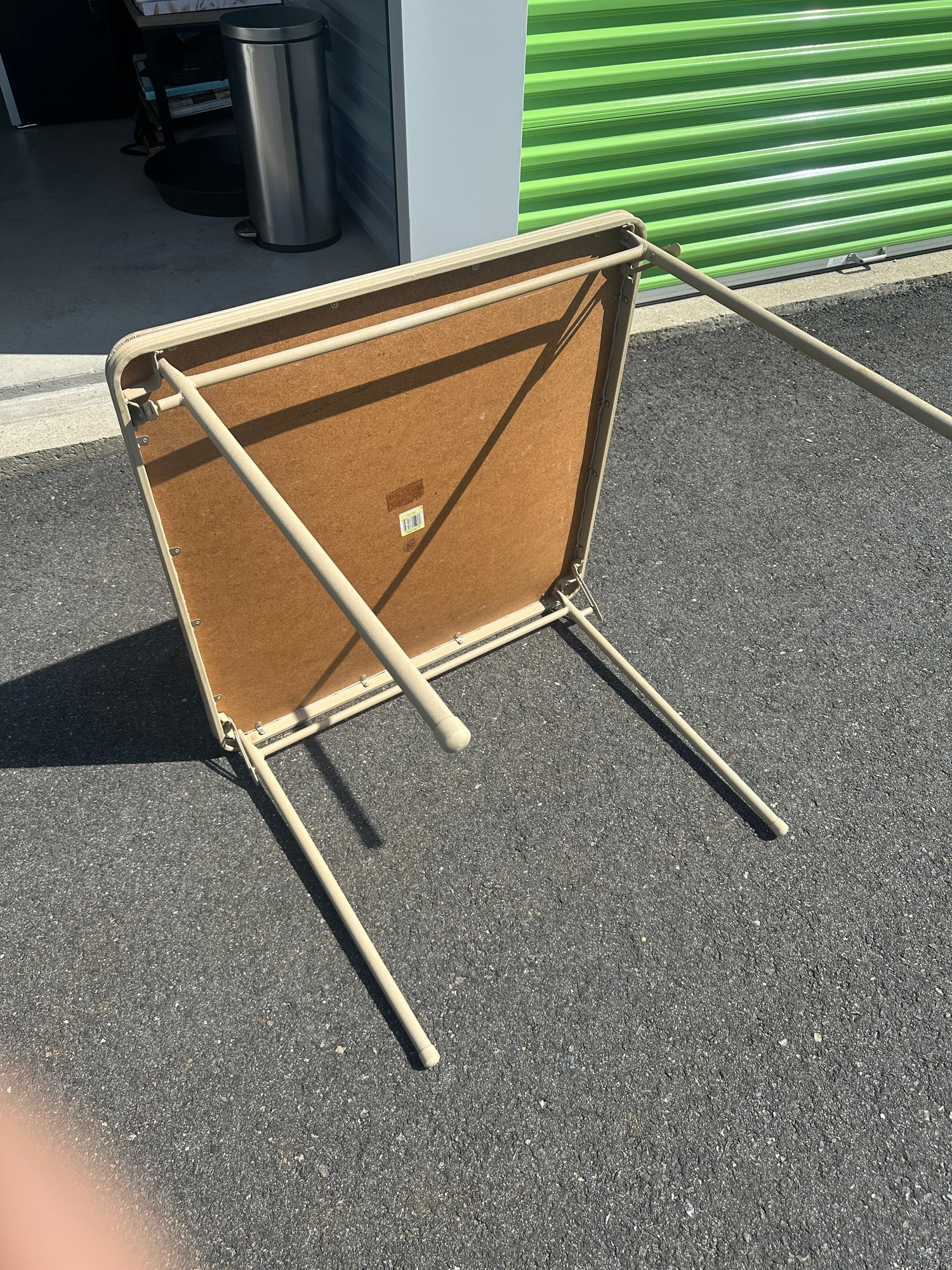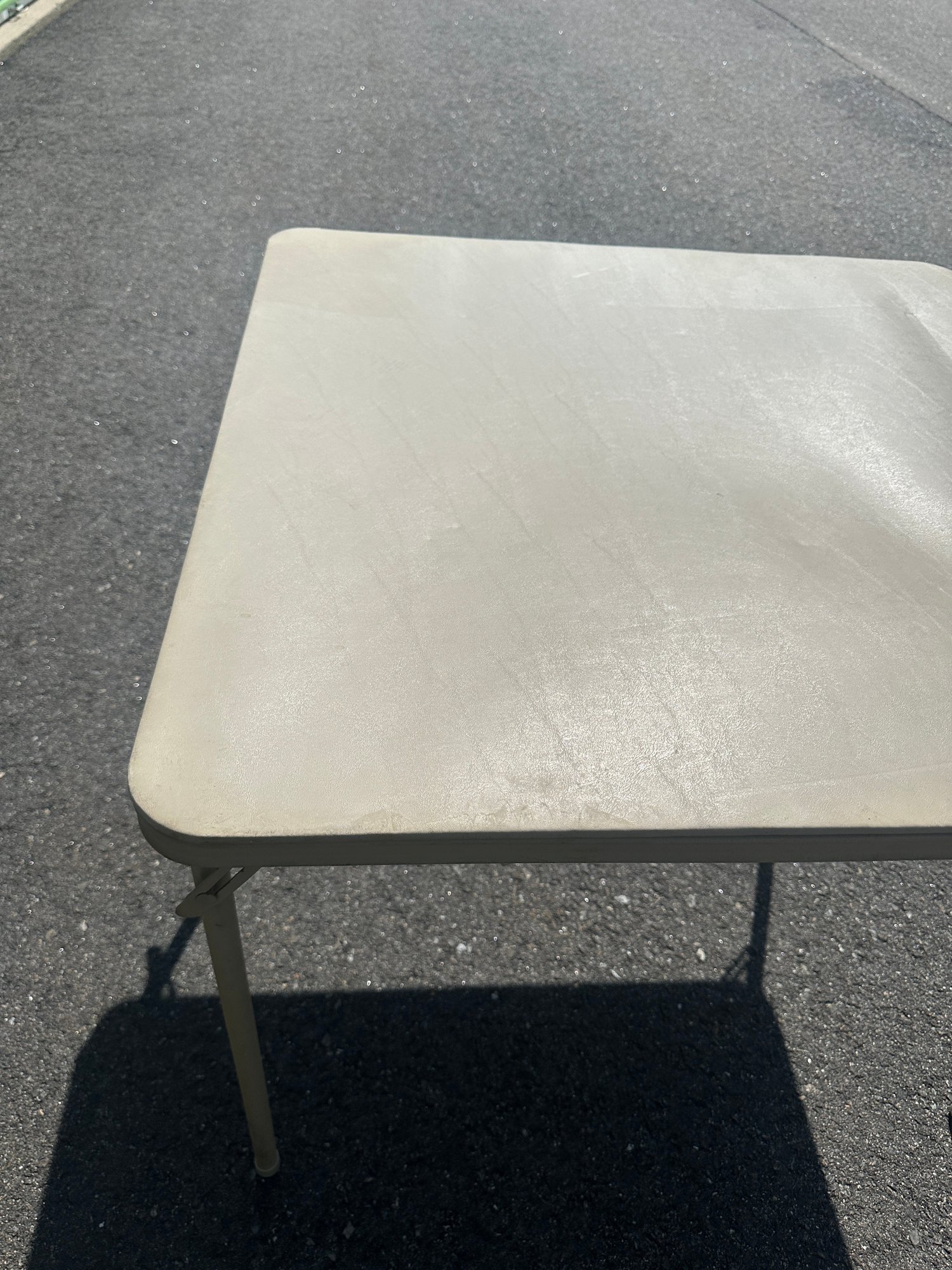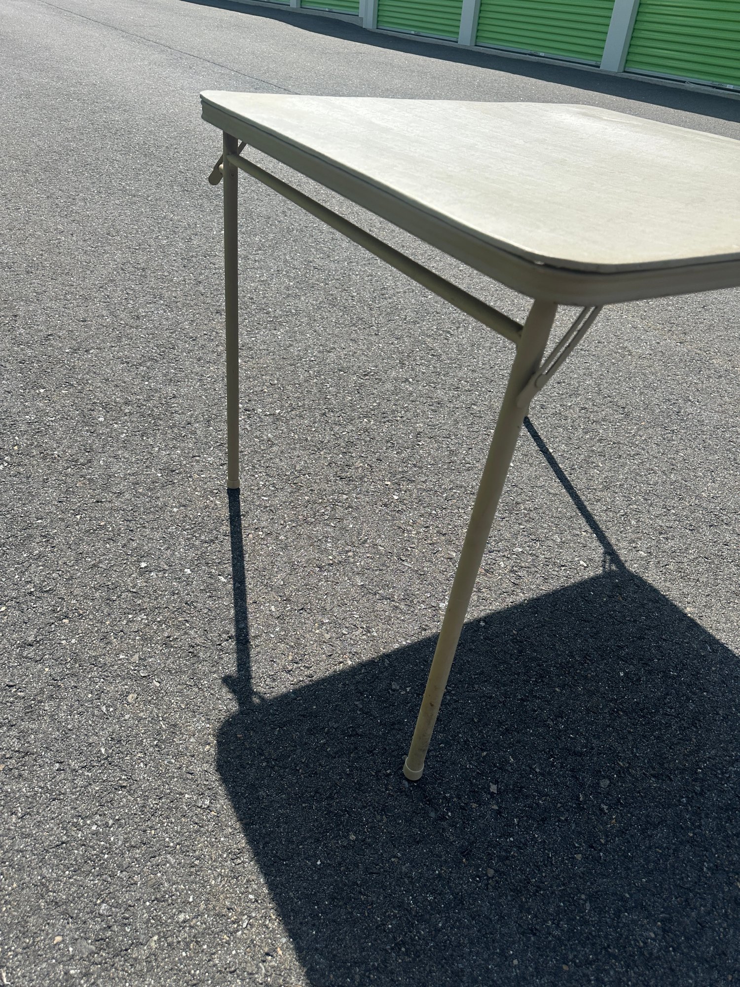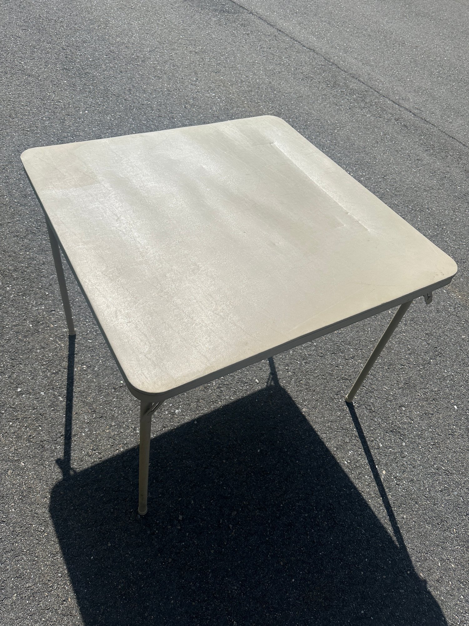 Sturdy folding utility table with durable plastic top and metal folding legs. Great for events, garage use, vendor setups, craft tables, or extra workspace.