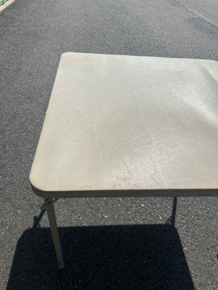 Notes: Good pre-owned condition. Structurally solid and stable Legs fold and lock properly Visible cosmetic wear on tabletop (scratches, scuffs, minor discoloration – see photos) No cracks or major damage
