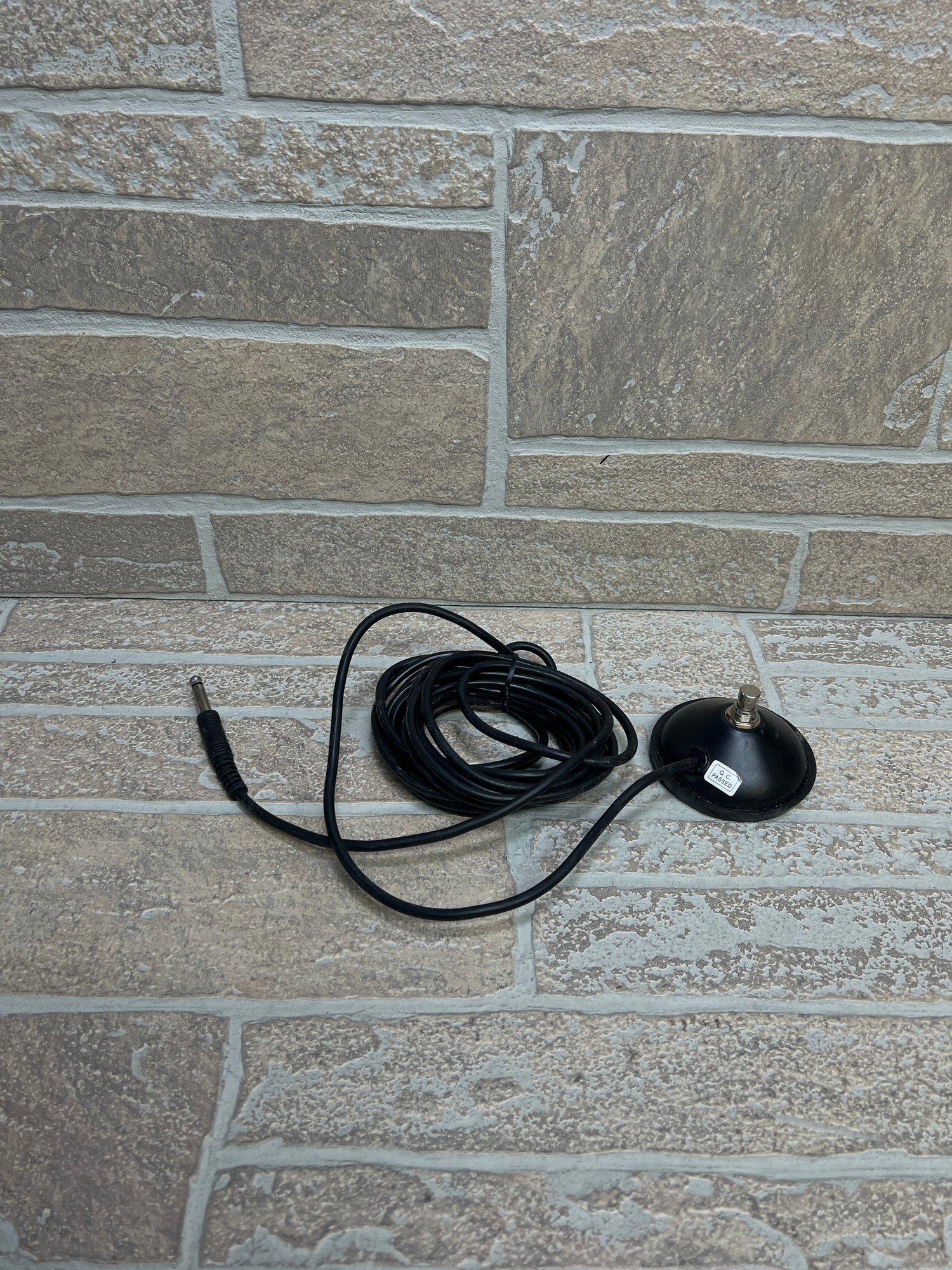 Black foot pedal switch with attached long cord and 1/4" jack connection. Commonly used for hands-free operation of compatible equipment such as lamps, tools, music gear, or other electronic devices.