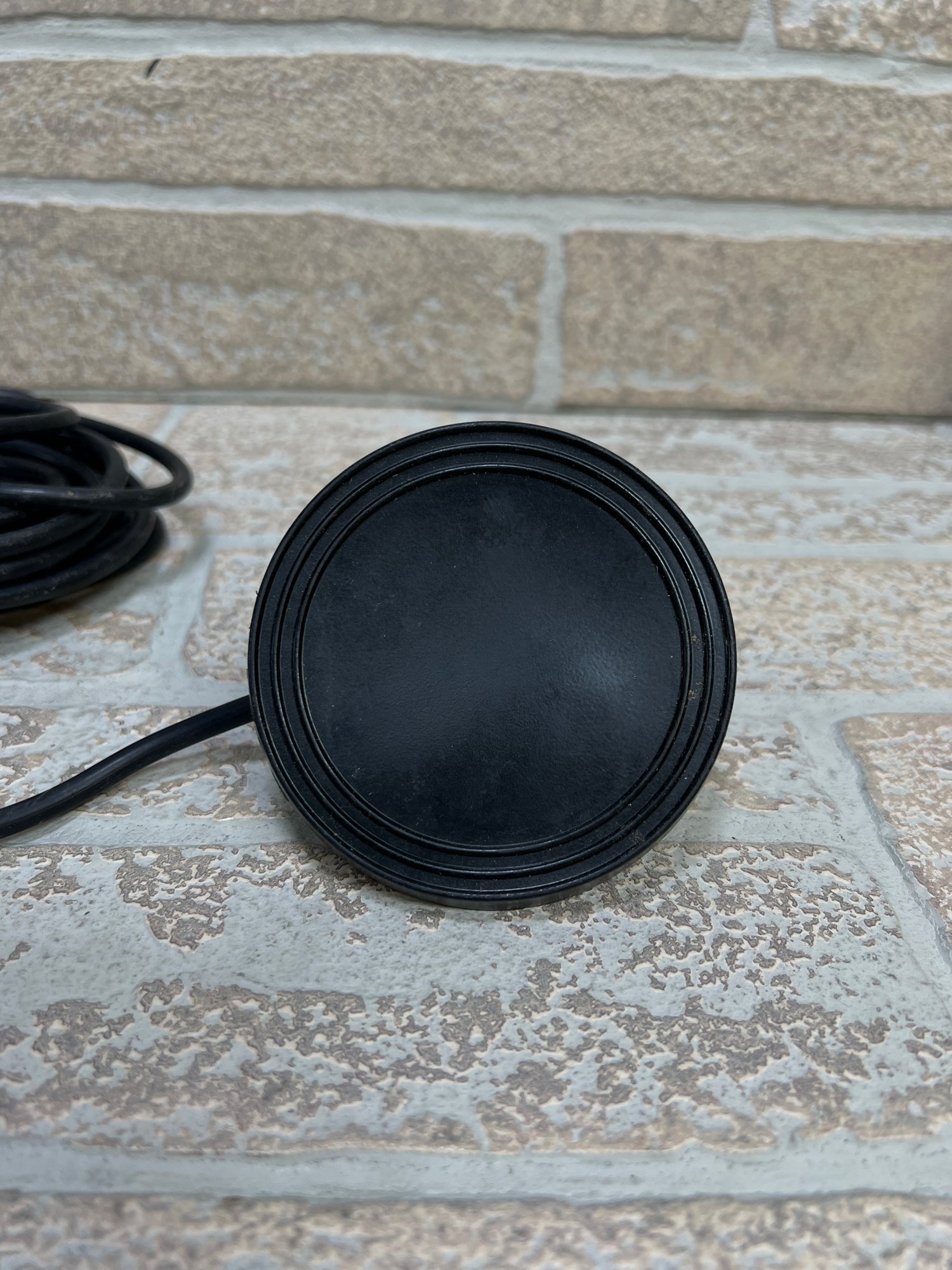 Features a sturdy round base and metal actuator button on top for easy foot operation.