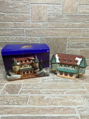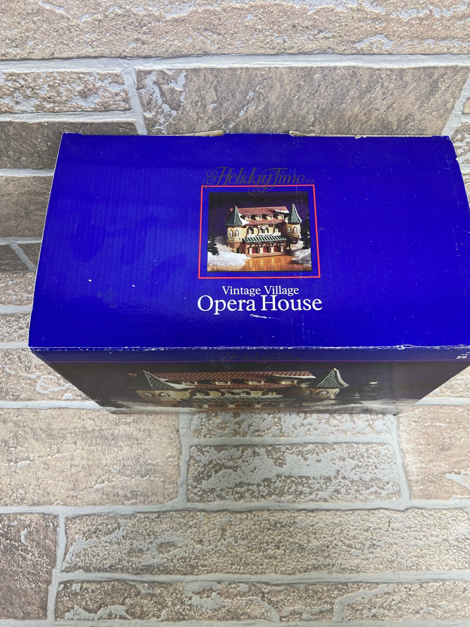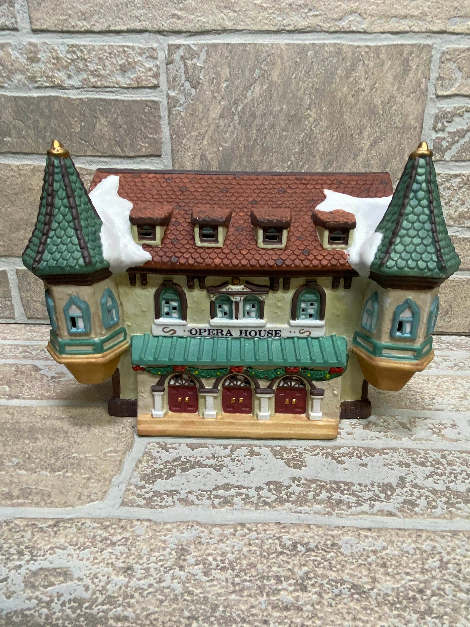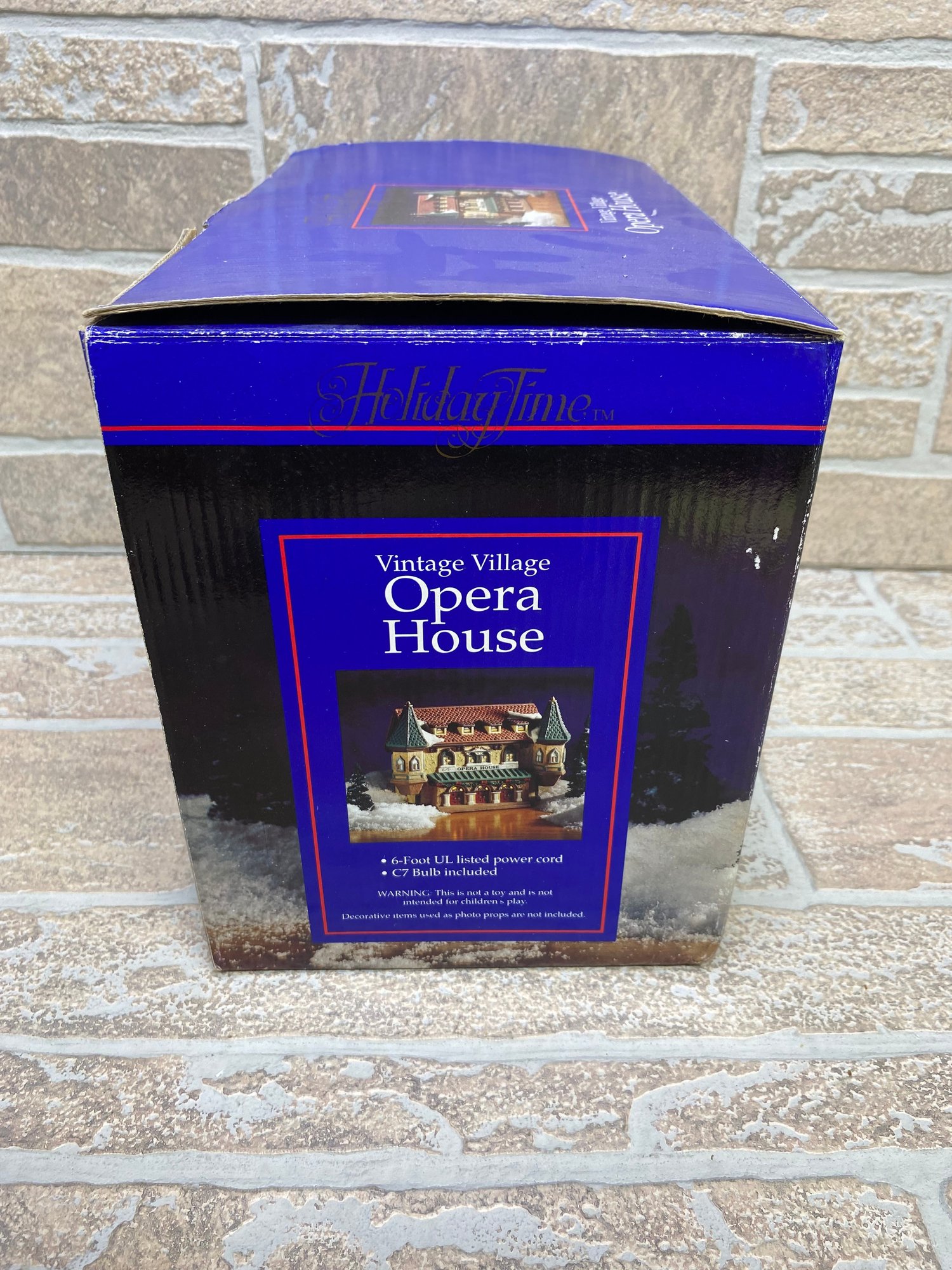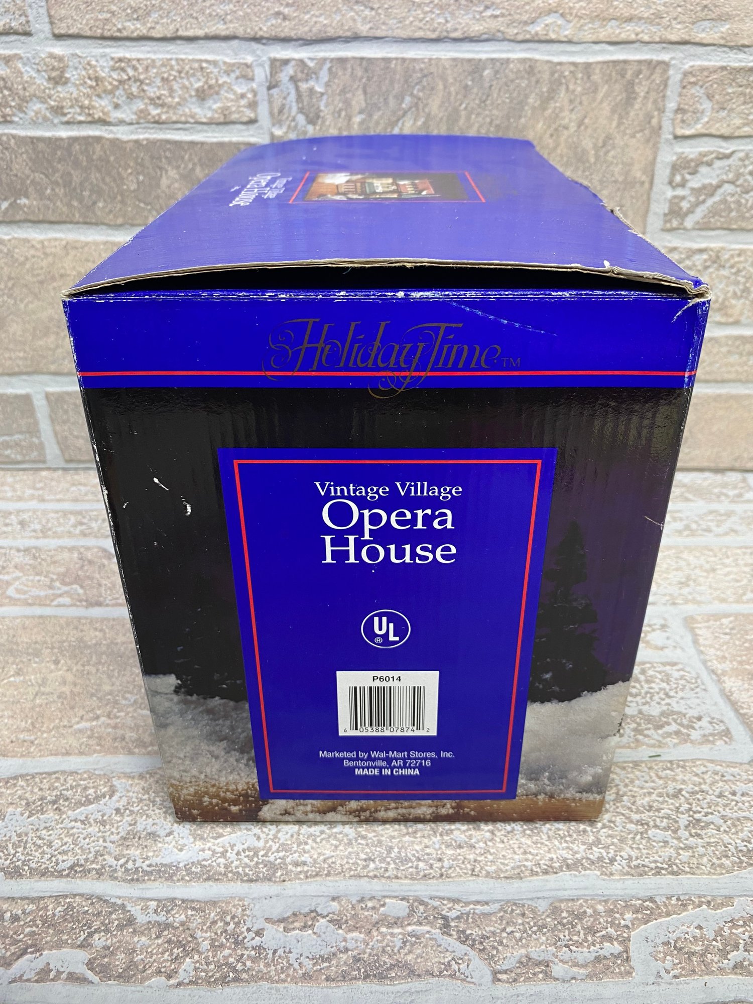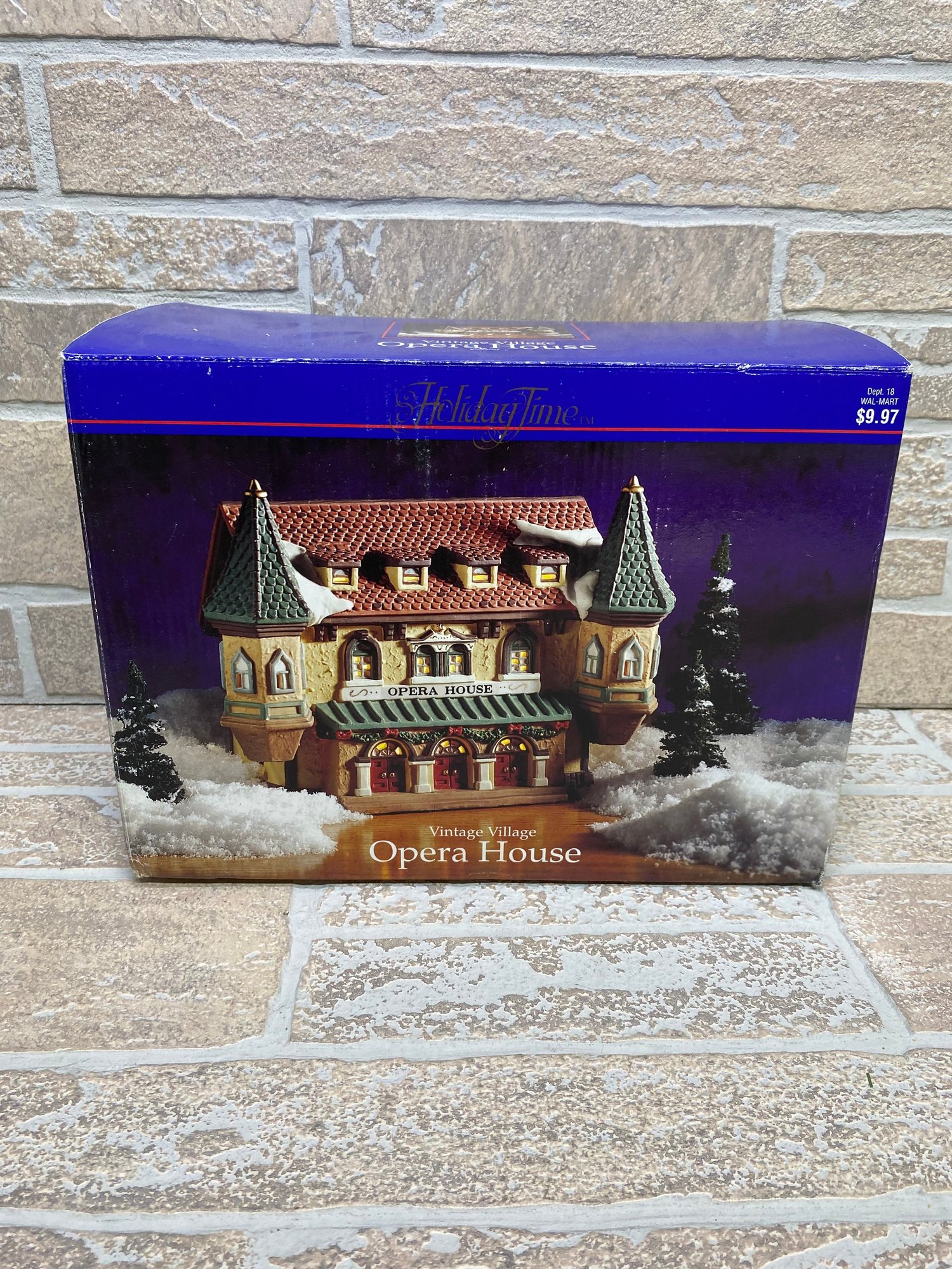 Holiday Time “Vintage Village Opera House” Christmas village building. This charming piece features a detailed European-style opera house with twin towers, textured roof, and festive holiday accents.