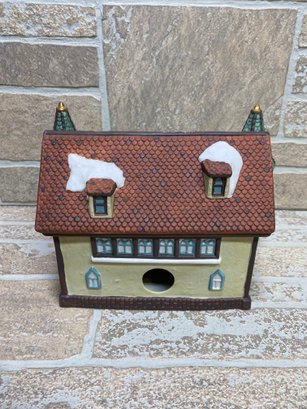 Designed to be part of a Christmas village display, this building has space for a standard light cord/bulb (not included).