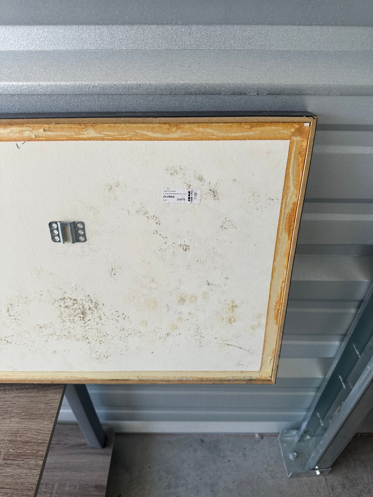 This piece appears to be an IKEA “OLUNDA” framed print (label on back), designed to replicate aged parchment-style drawings for a classic, vintage aesthetic. A great decorative statement piece for office, study, or living space.