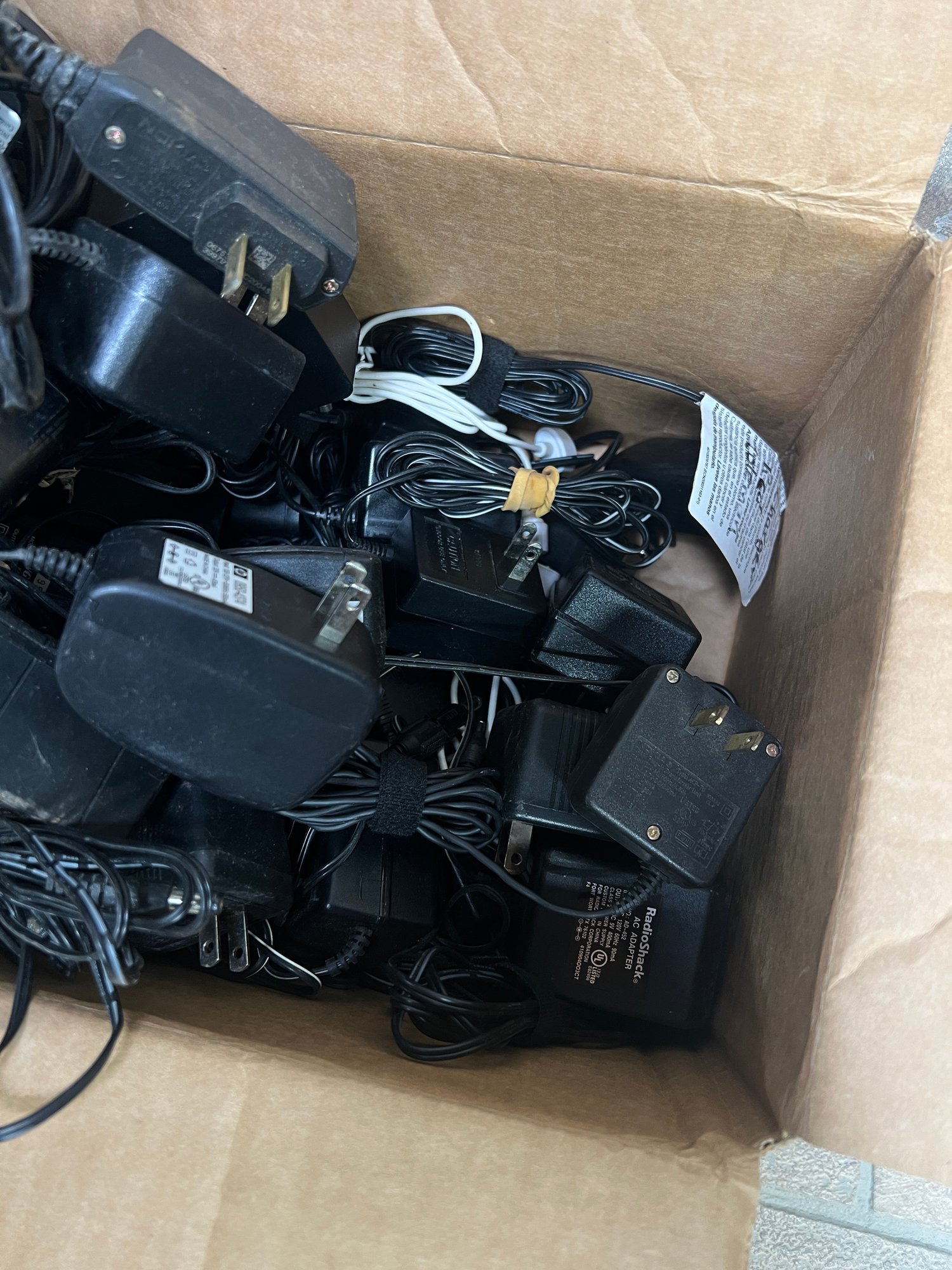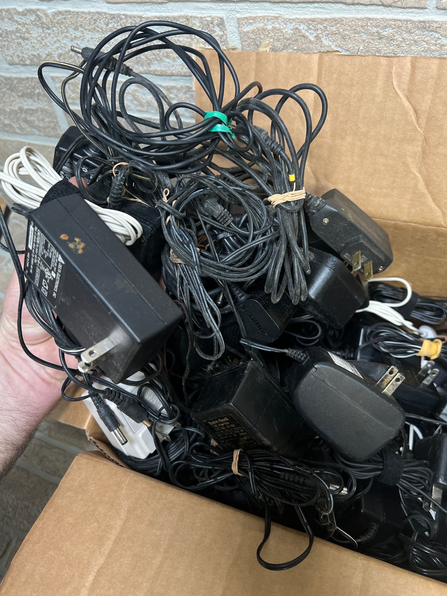 Large mixed lot of AC/DC power adapters, chargers, and power supplies. Great for electronics repair, hobbyists, resellers, or parts use.
