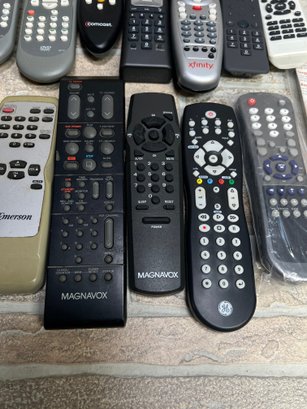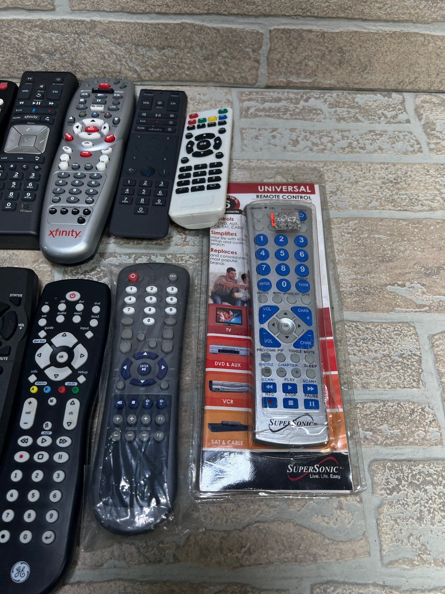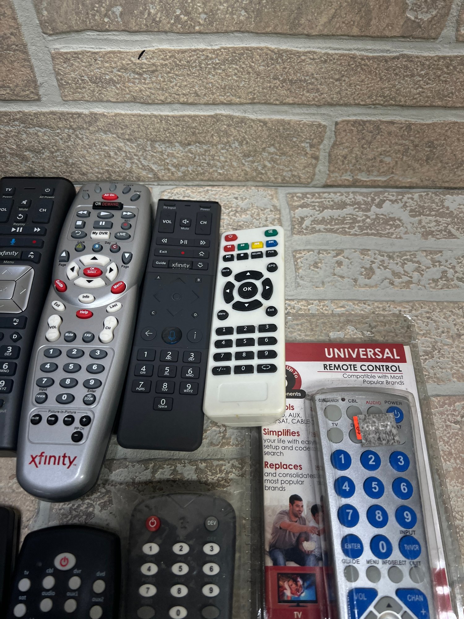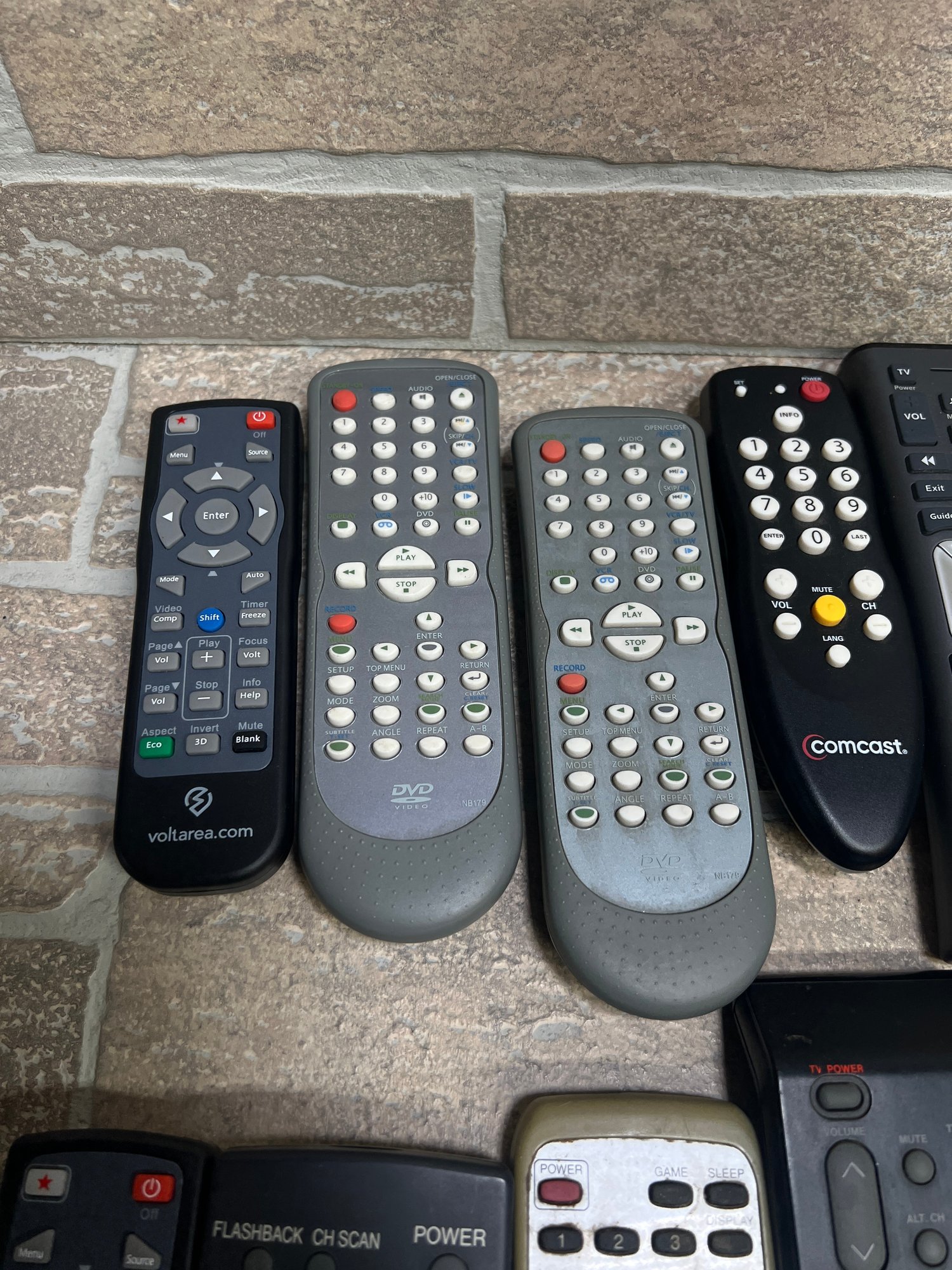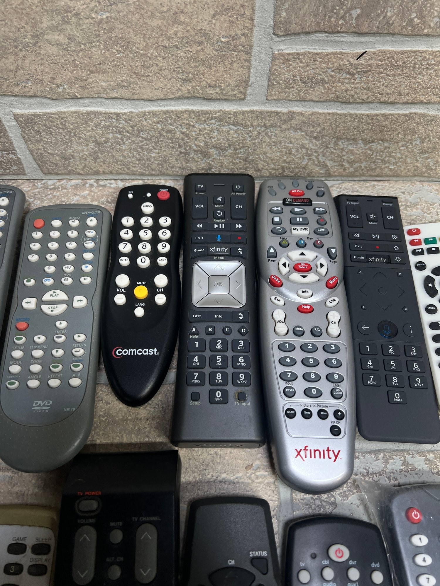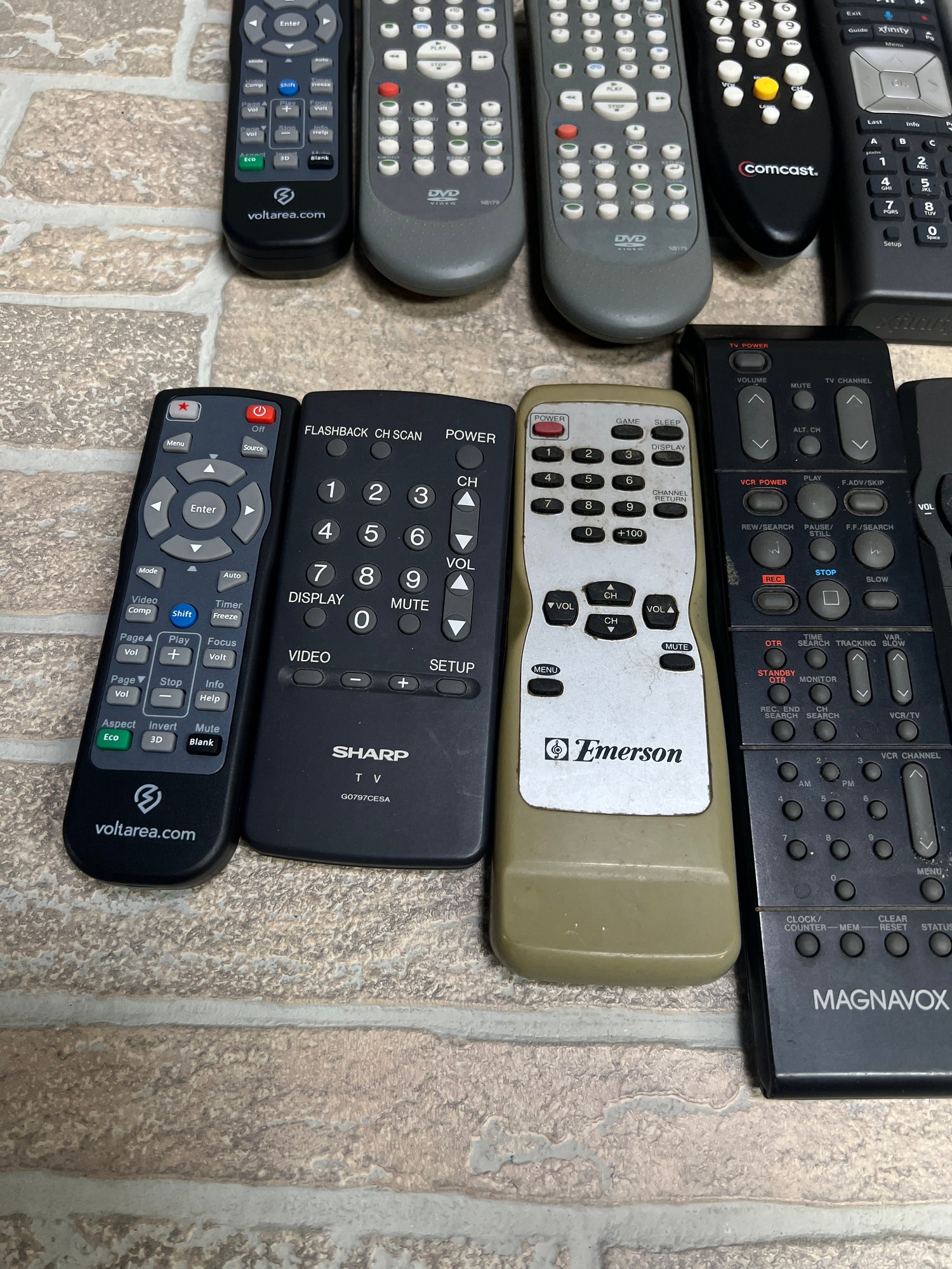 Large mixed lot of TV, DVD, and cable remotes. Great for replacements, resale, or parts.