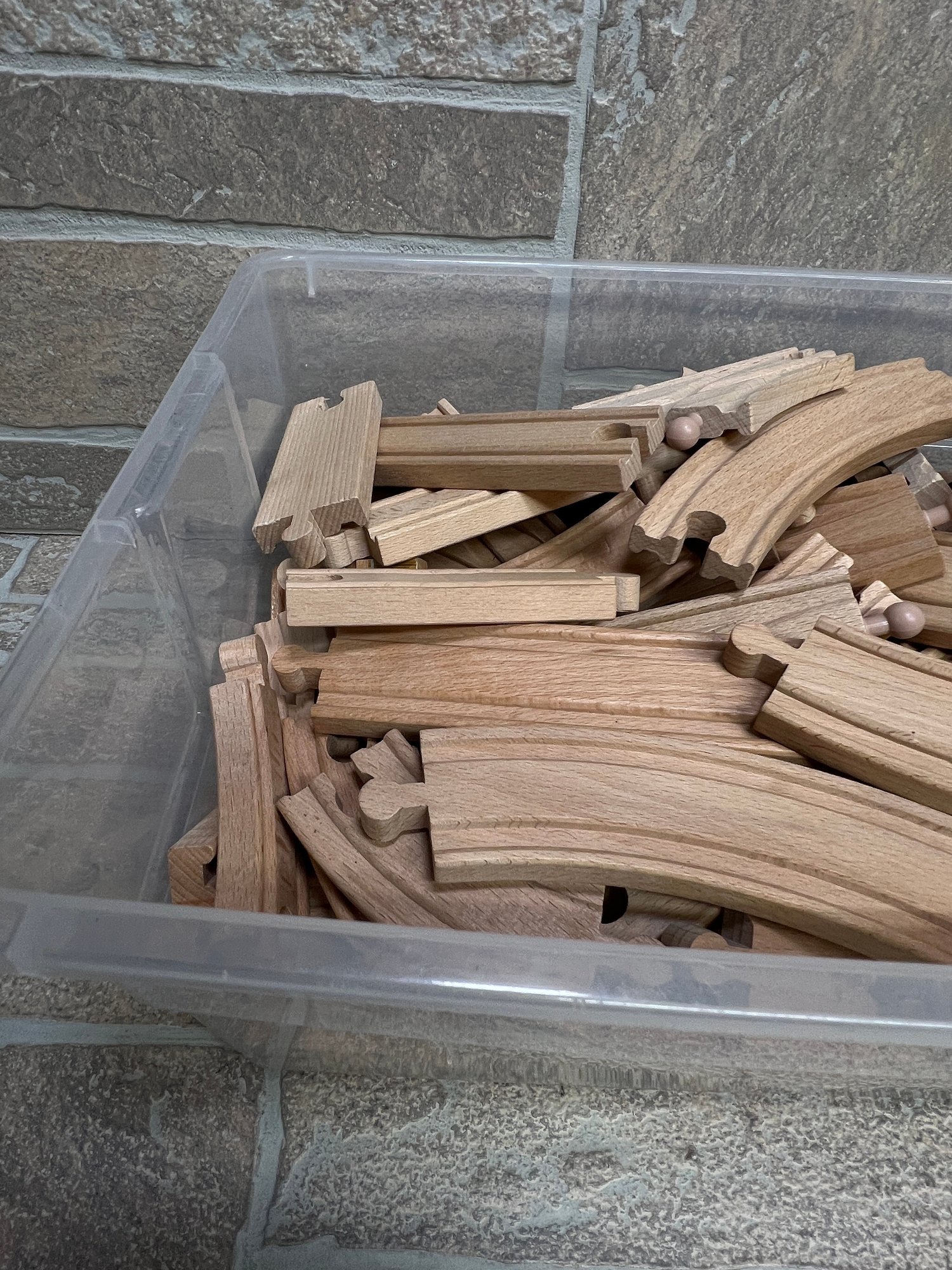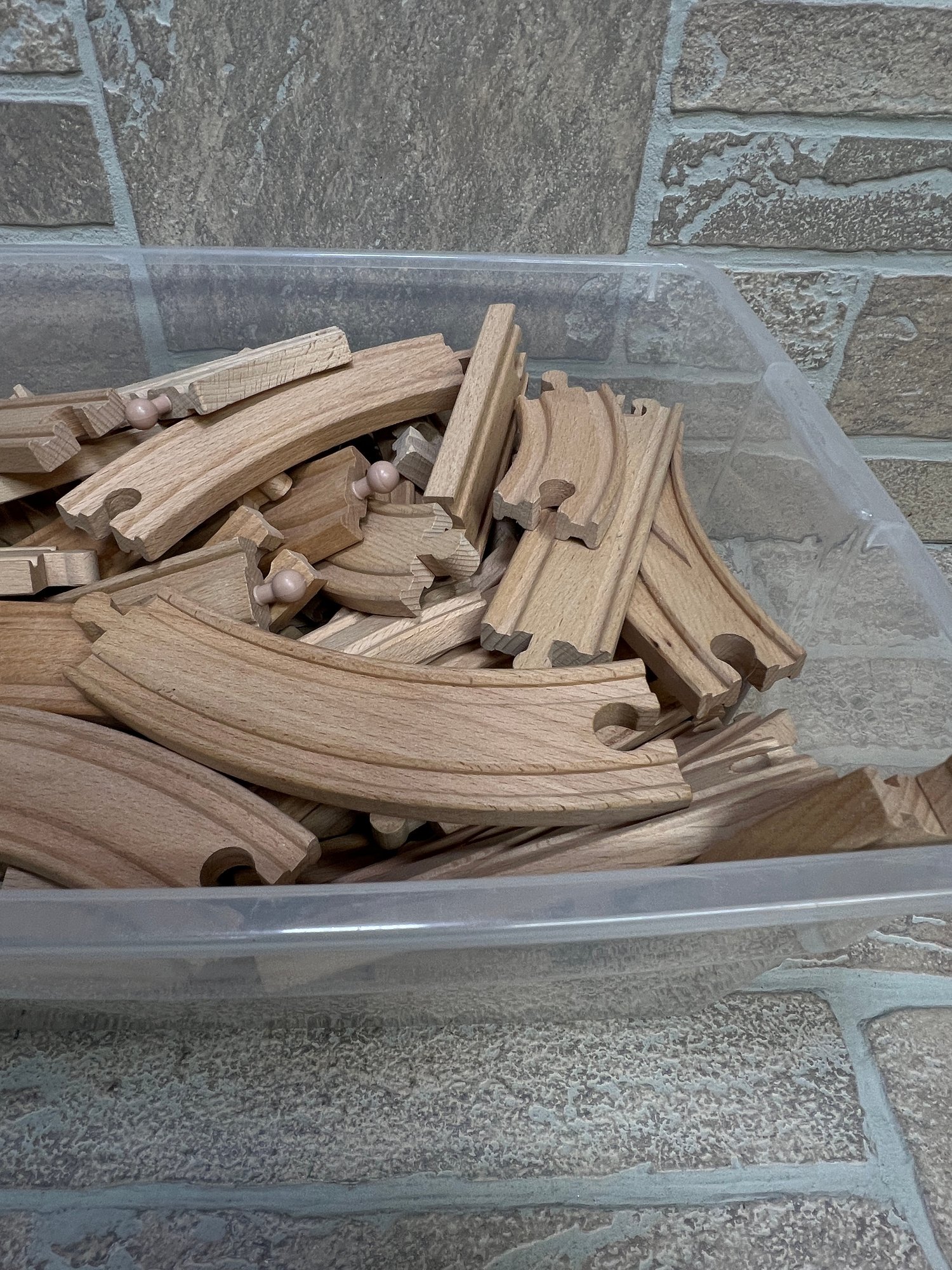 Assorted wooden train track pieces (large quantity)