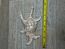 Striking natural spider conch seashell featuring dramatic extended “legs” and beautiful cream and brown patterned exterior with a soft pink interior. This large shell makes an excellent coastal décor accent, display piece, or addition to a shell collection.