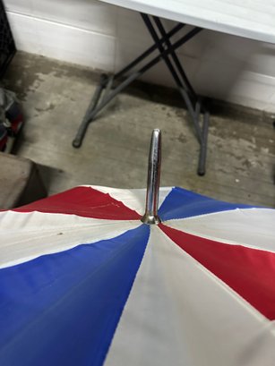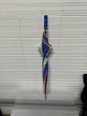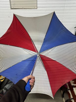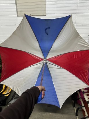 Bold and eye-catching red, white, and blue umbrella featuring a patriotic color pattern. Large coverage design makes it great for golf, beach days, outdoor events, or rain protection.