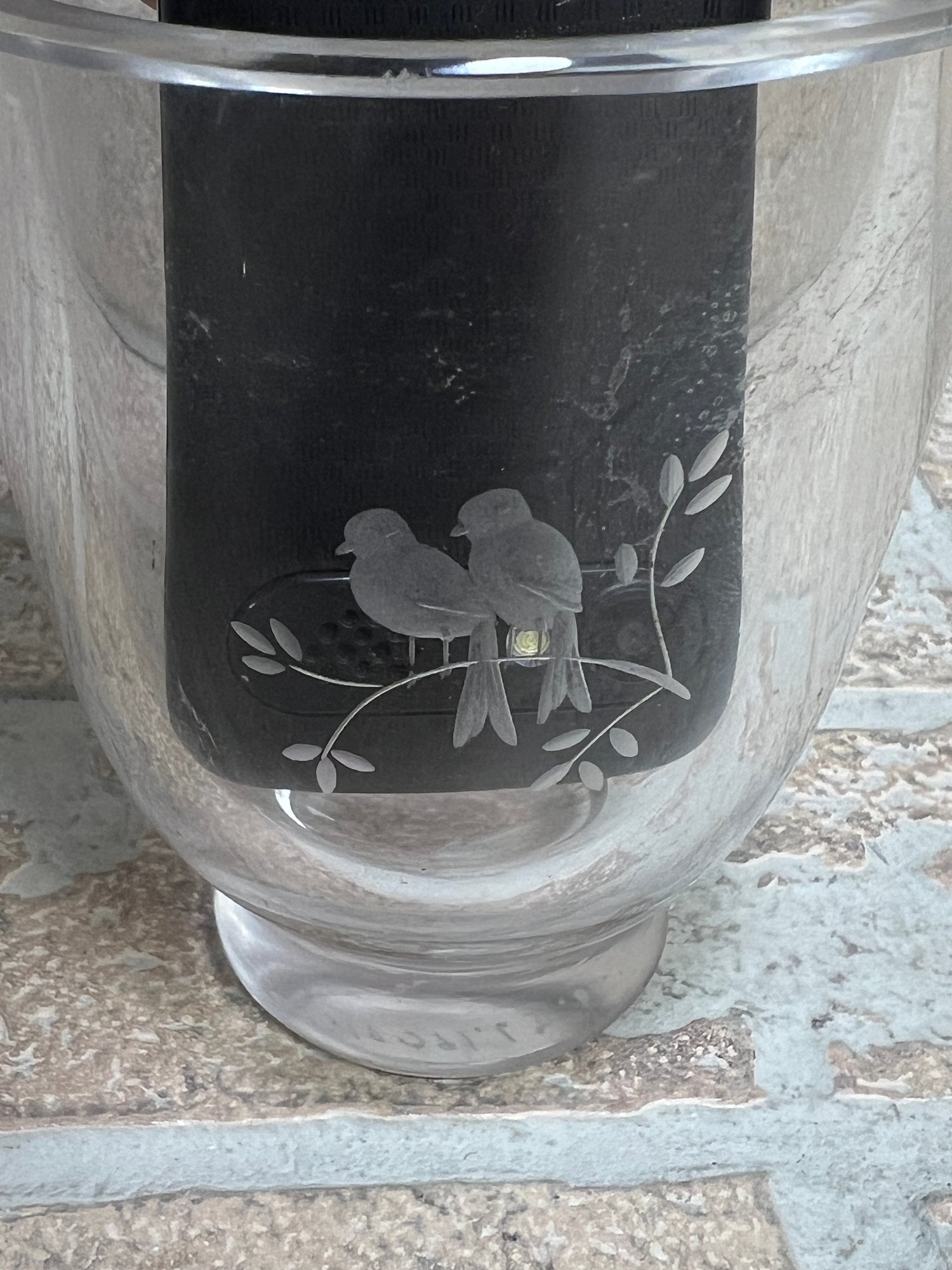 Glass Candle Holder With Bird Prints