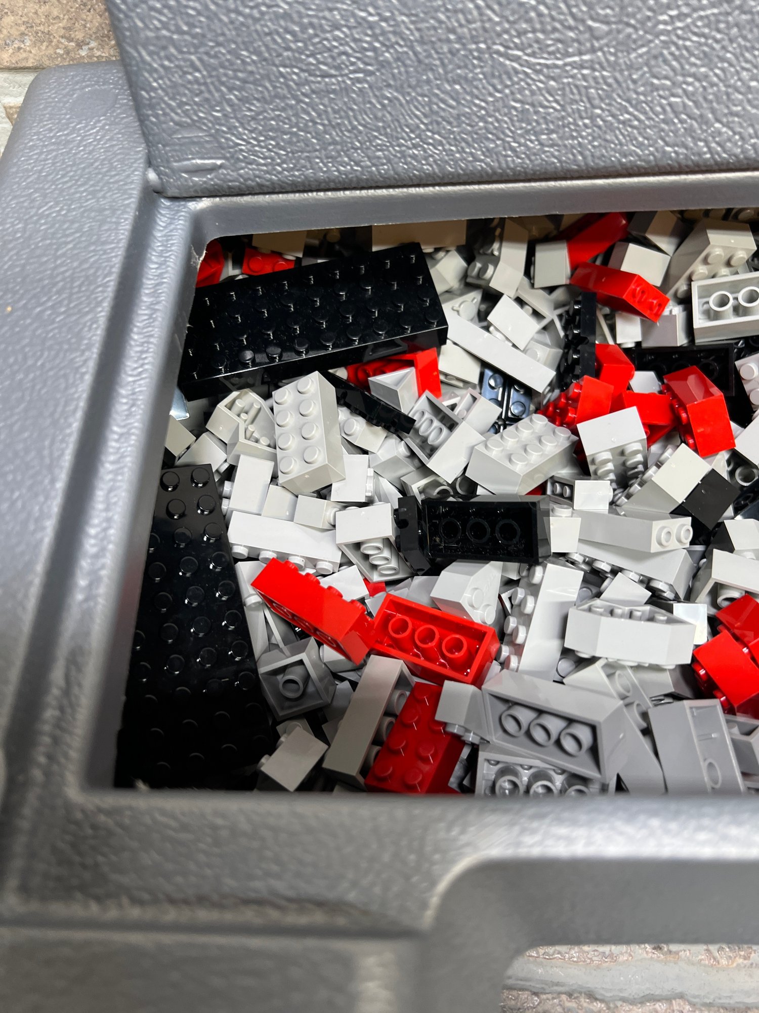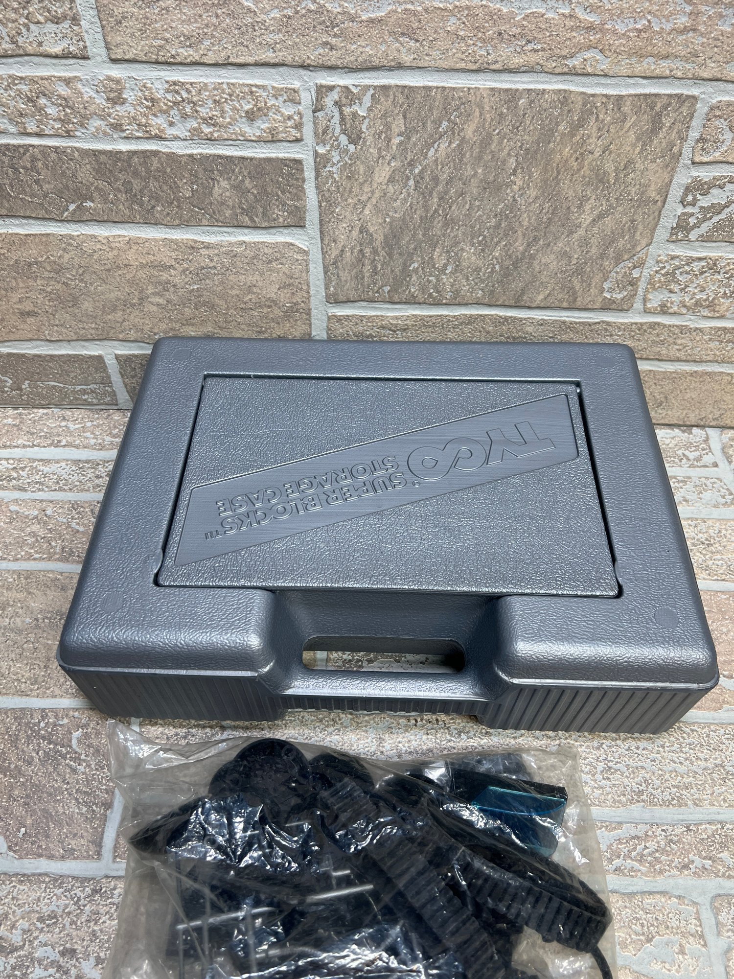 Appears To Contain Lego and Lego Style Pieces To Different Sets and Assorted Pieces. All Pieces Inside a Tyco Super Block Storage Case