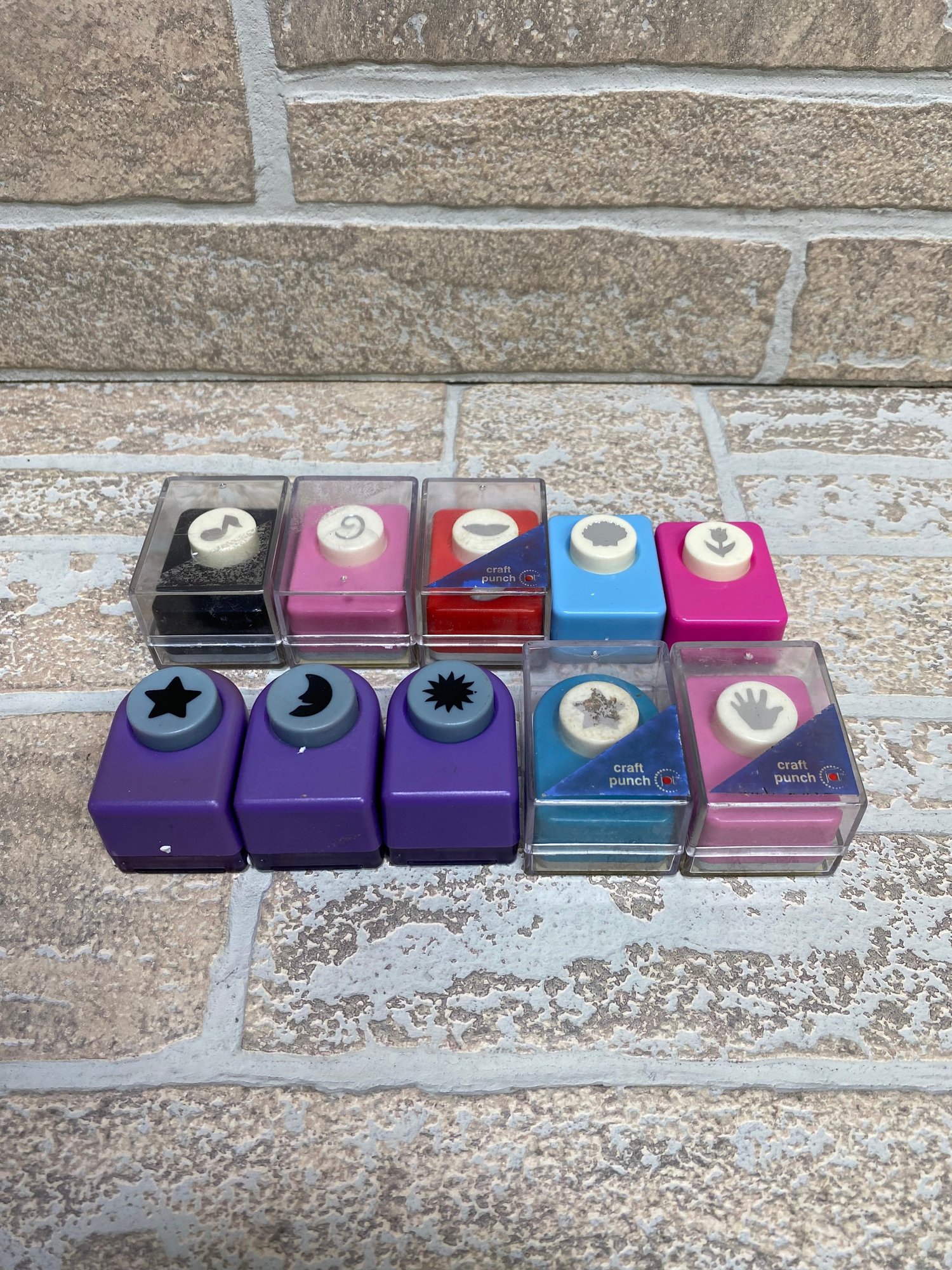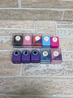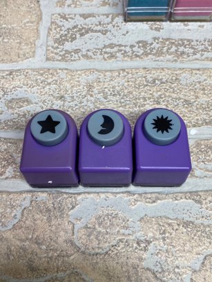 Assorted lot of craft paper punches in various shapes and styles. Great for scrapbooking, card making, classroom use, or general crafting projects.