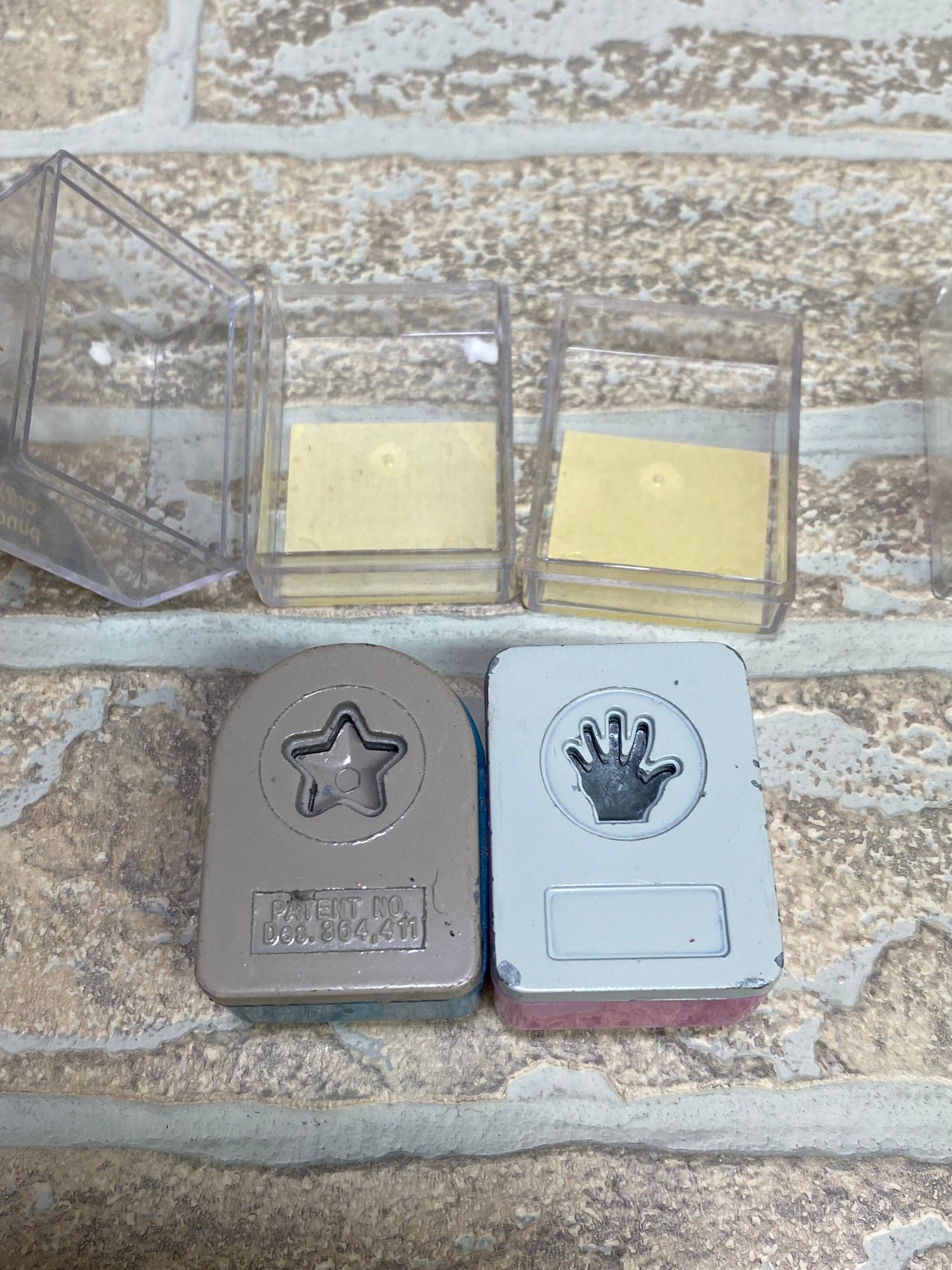 Includes a mix of standard and boxed punches with designs such as: